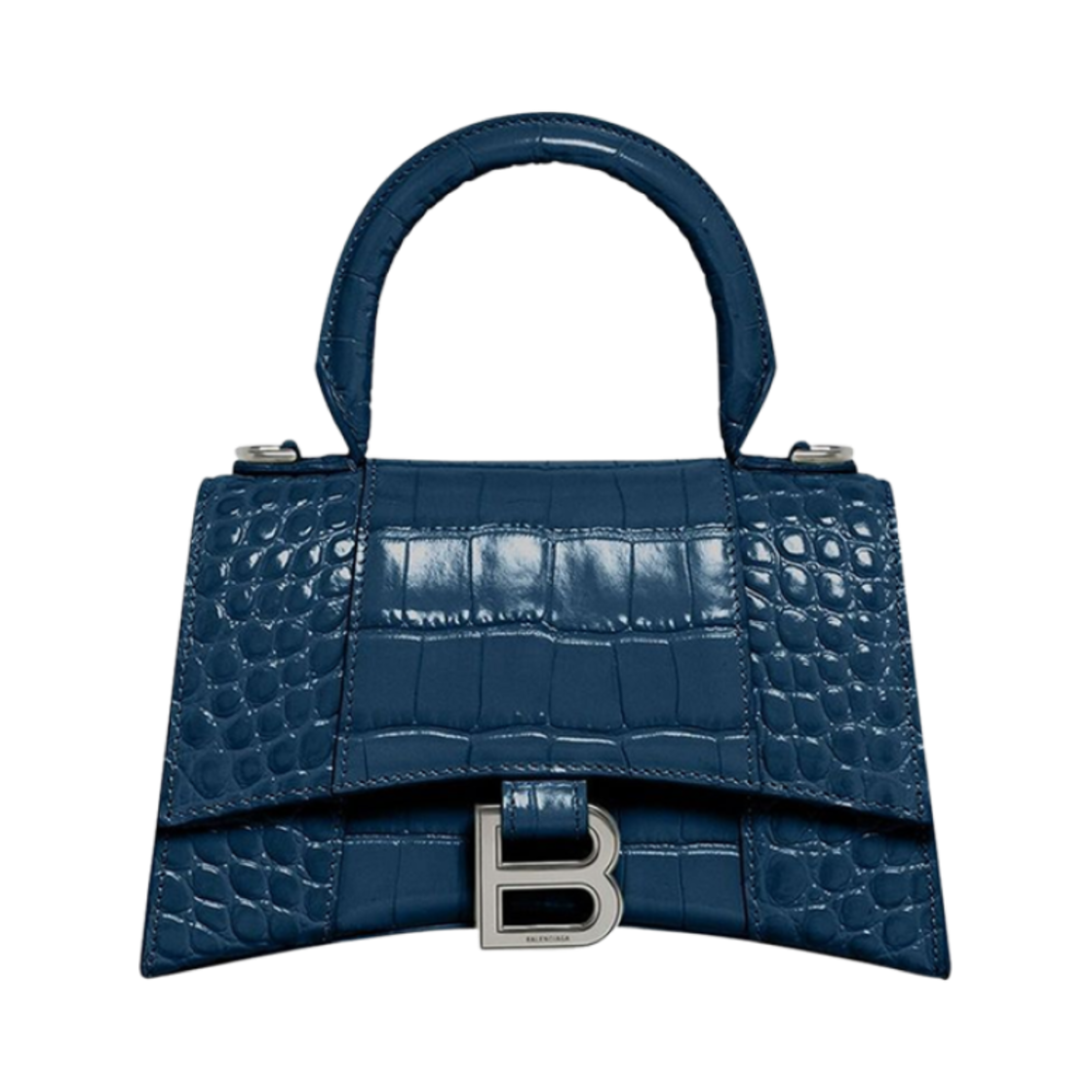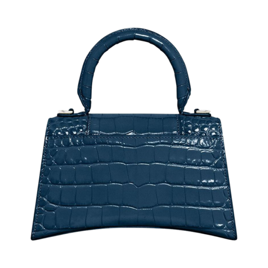 발렌시아가 아워글래스 XS 핸드백 크로커다일 엠보스 다크 페트롤 블루