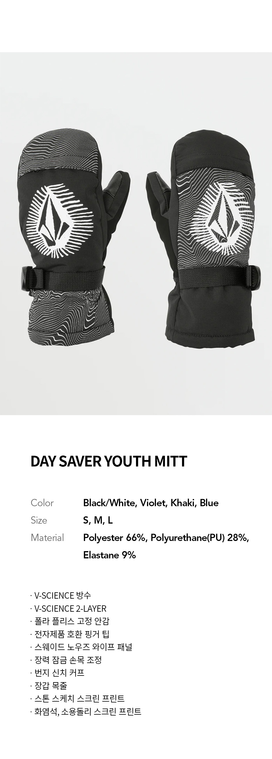 볼컴 키즈 DAY SAVER 글러브 블랙 화이트