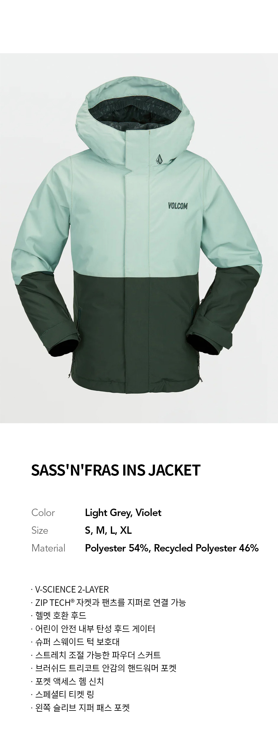 볼컴 키즈 SASSNFRAS 인슐레이티드 자켓 라이트 그레이