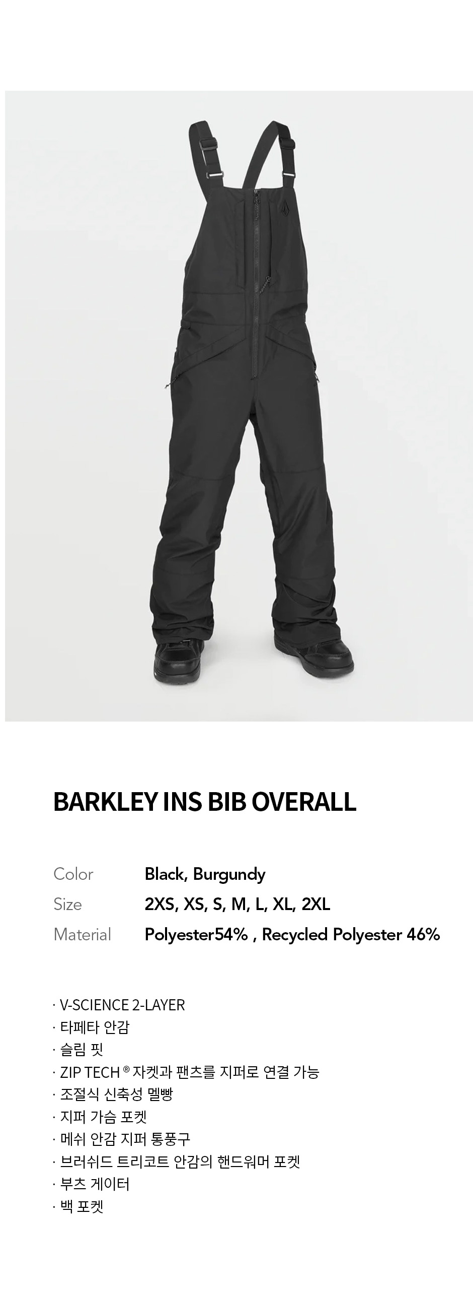 볼컴 키즈 BARKLEY 인슐레이티드 빕 오버롤 팬츠 블랙