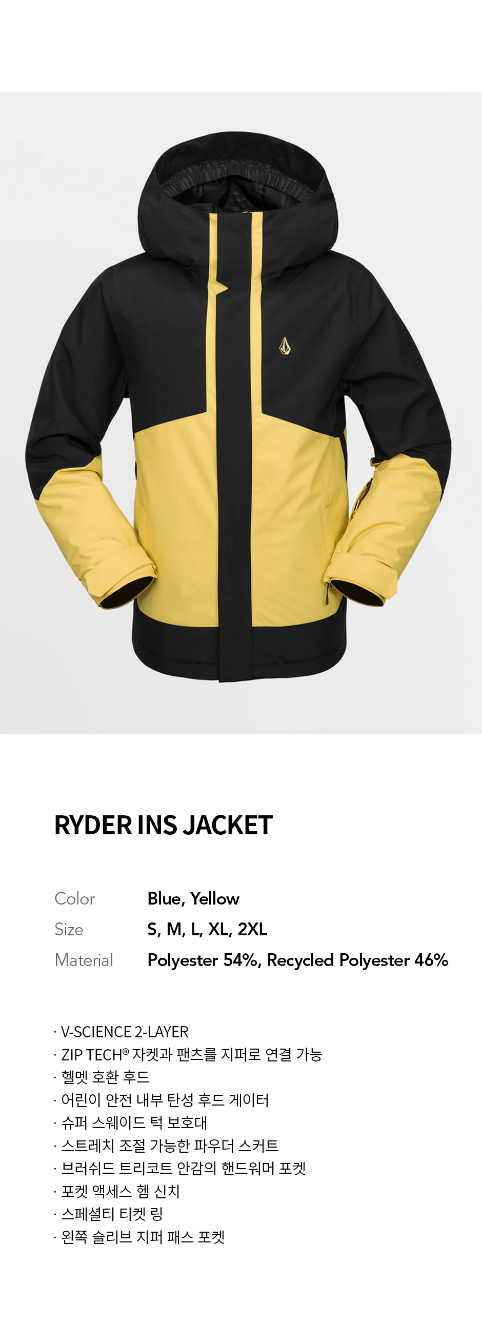 볼컴 키즈 RYDER 인슐레이티드 자켓 옐로우