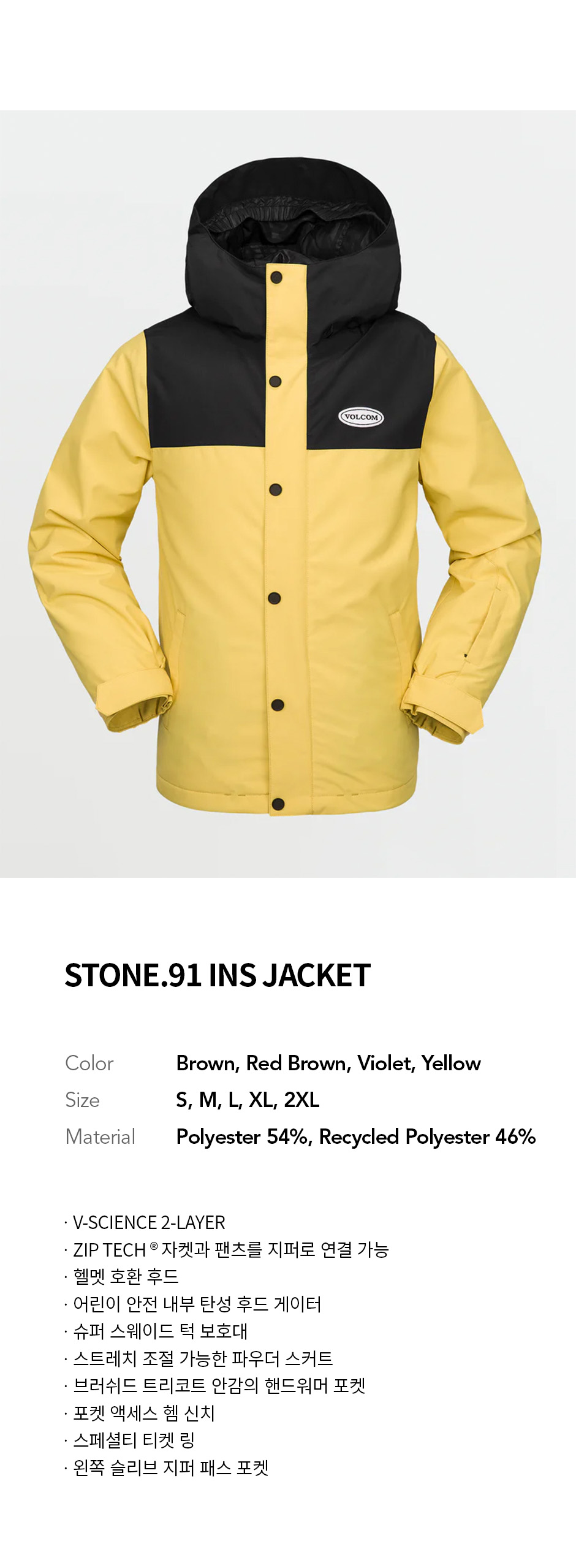 볼컴 키즈 스톤 91 인슐레이티드 자켓 옐로우