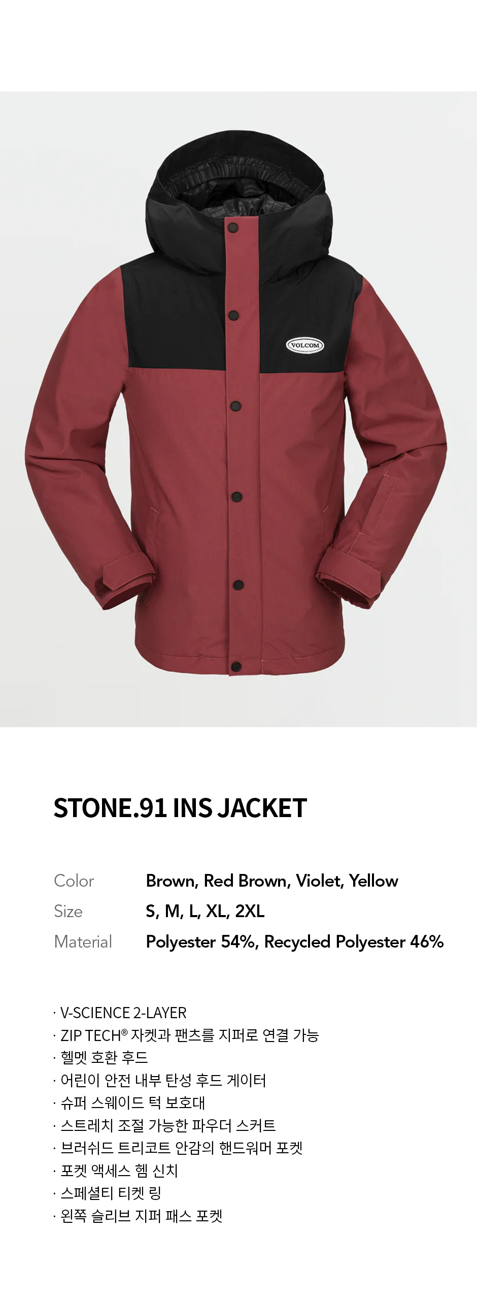 볼컴 키즈 스톤 91 인슐레이티드 자켓 레드 브라운