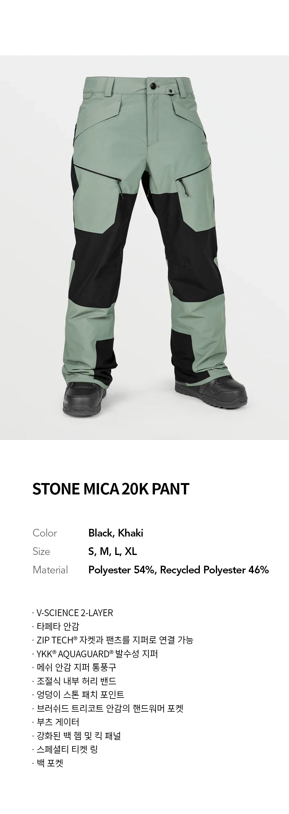 볼컴 우먼즈 스톤 마이커 20K 팬츠 카키