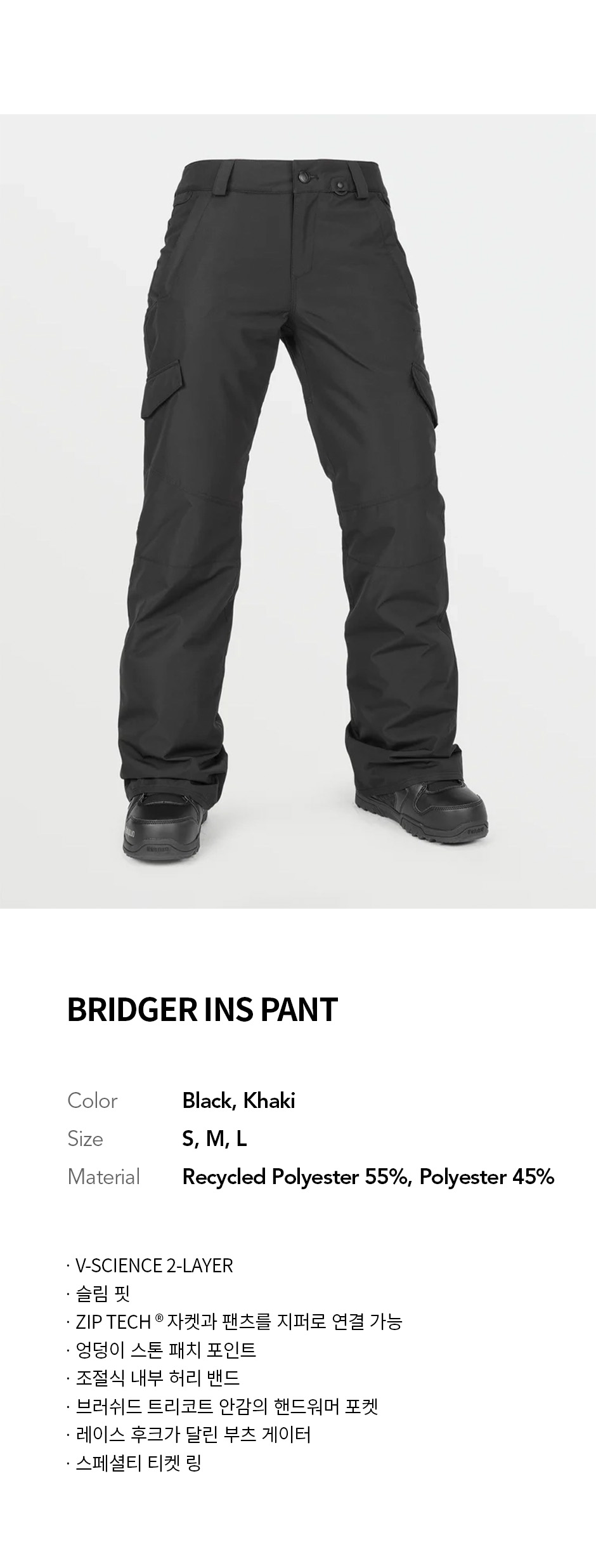 볼컴 우먼즈 BRIDGER 인슐레이티드 팬츠 블랙