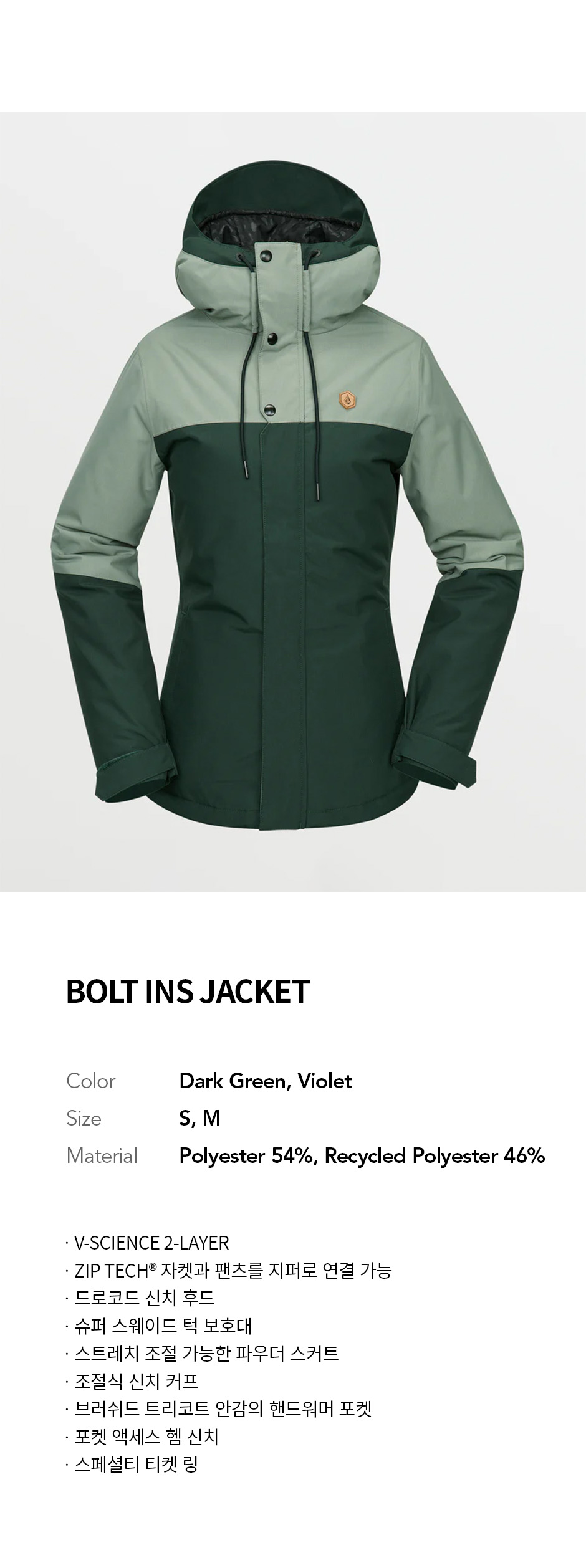 볼컴 우먼즈 볼트 인슐레이티드 자켓 다크 그린