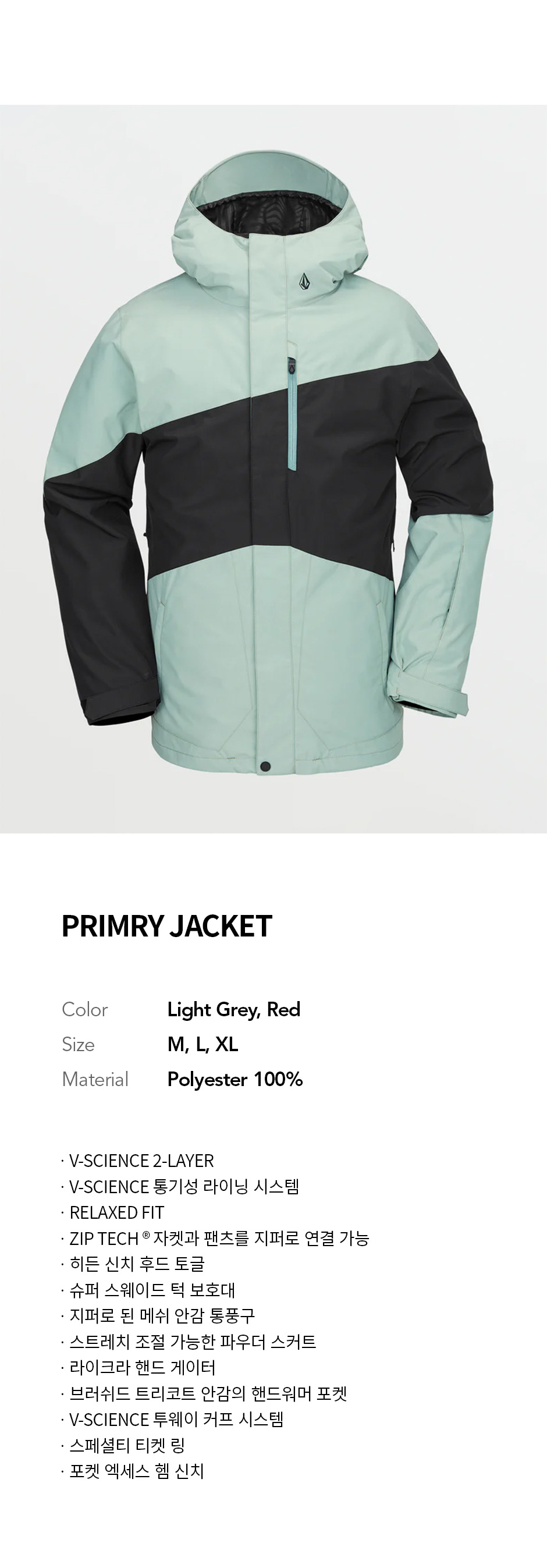 볼컴 맨즈 PRIMRY 자켓 라이트 그레이