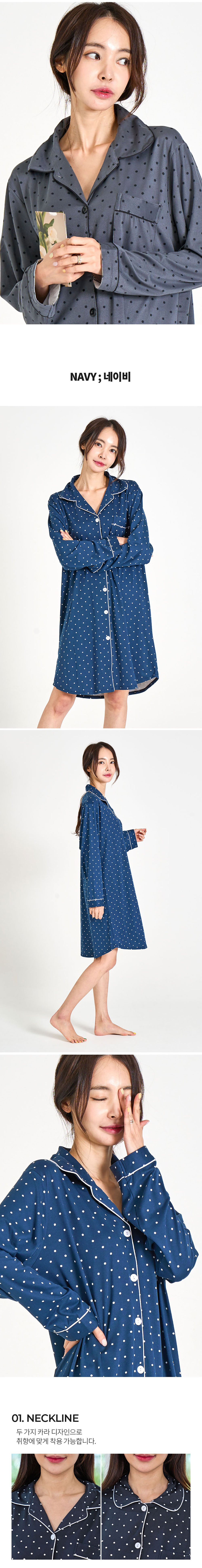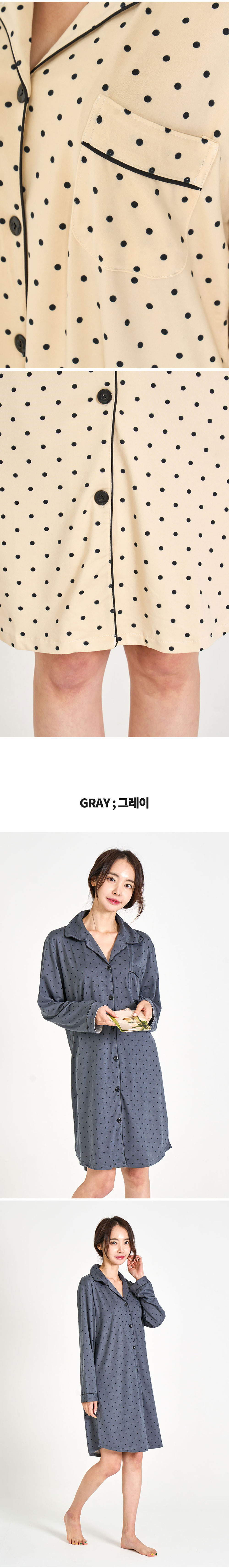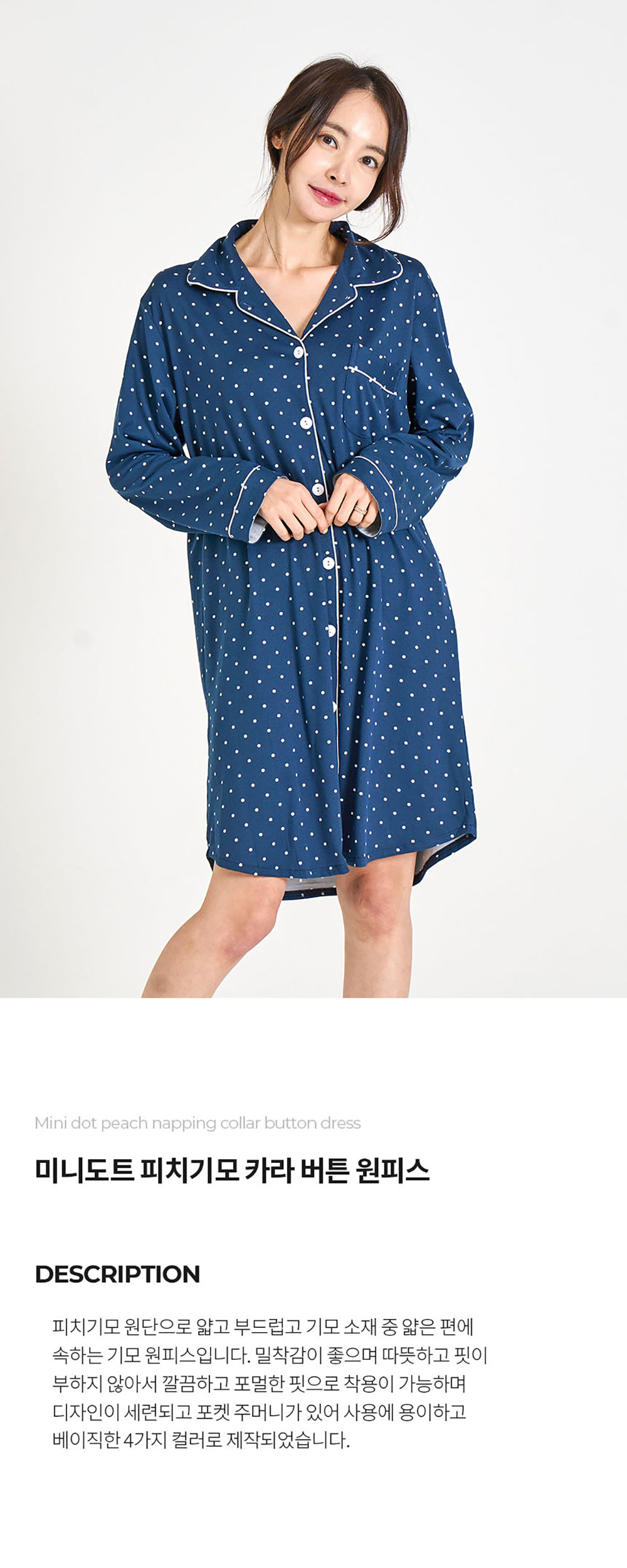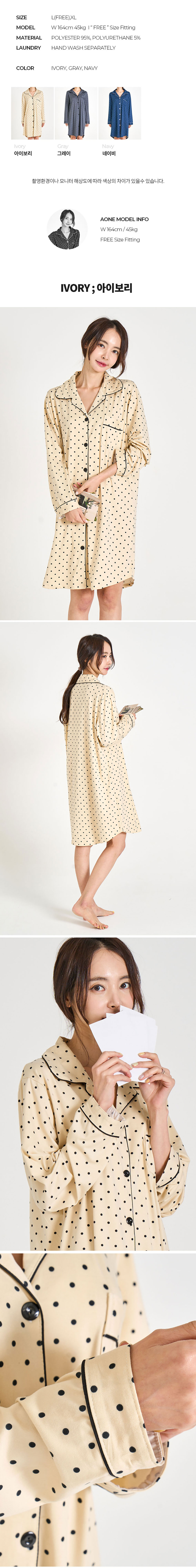 [3% 적립] (W) Aone Mini Dot Peach Fleece Collar Button Pajama Dress Dot Ivory