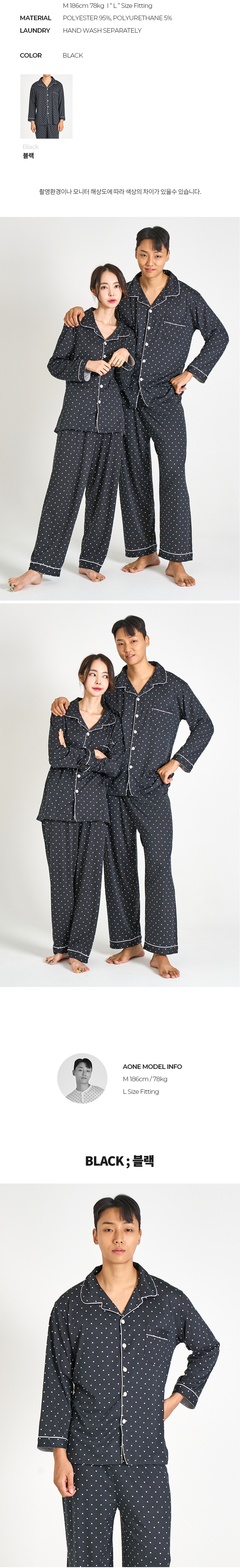에이원 유니섹스 미니 도트 카라 잠옷 세트 도트블랙