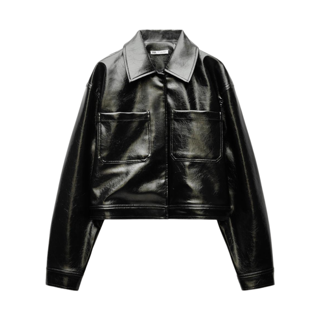 (W) Zara Faux Leather Jacket Black