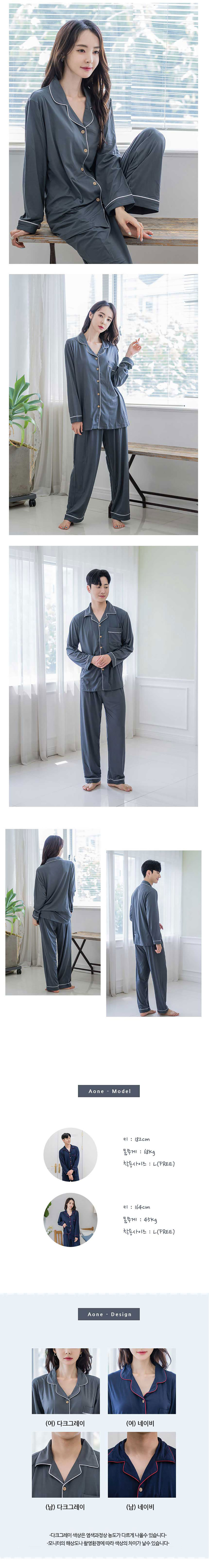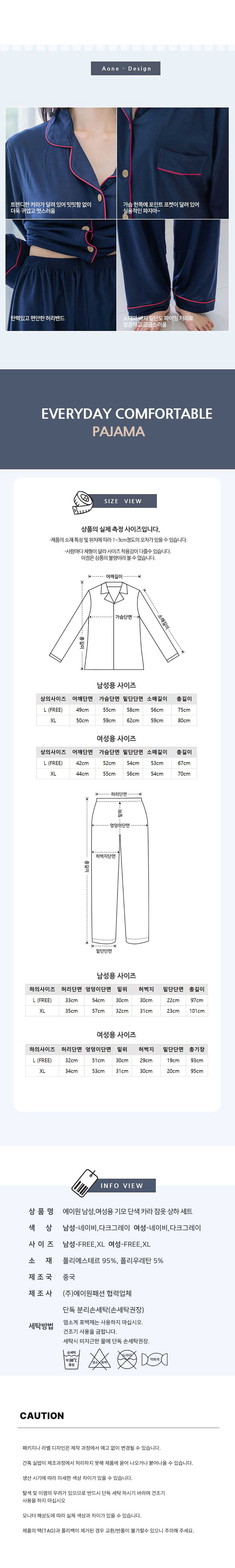 [3% 적립] 에이원 기모 단색 카라 잠옷 세트 네이비
