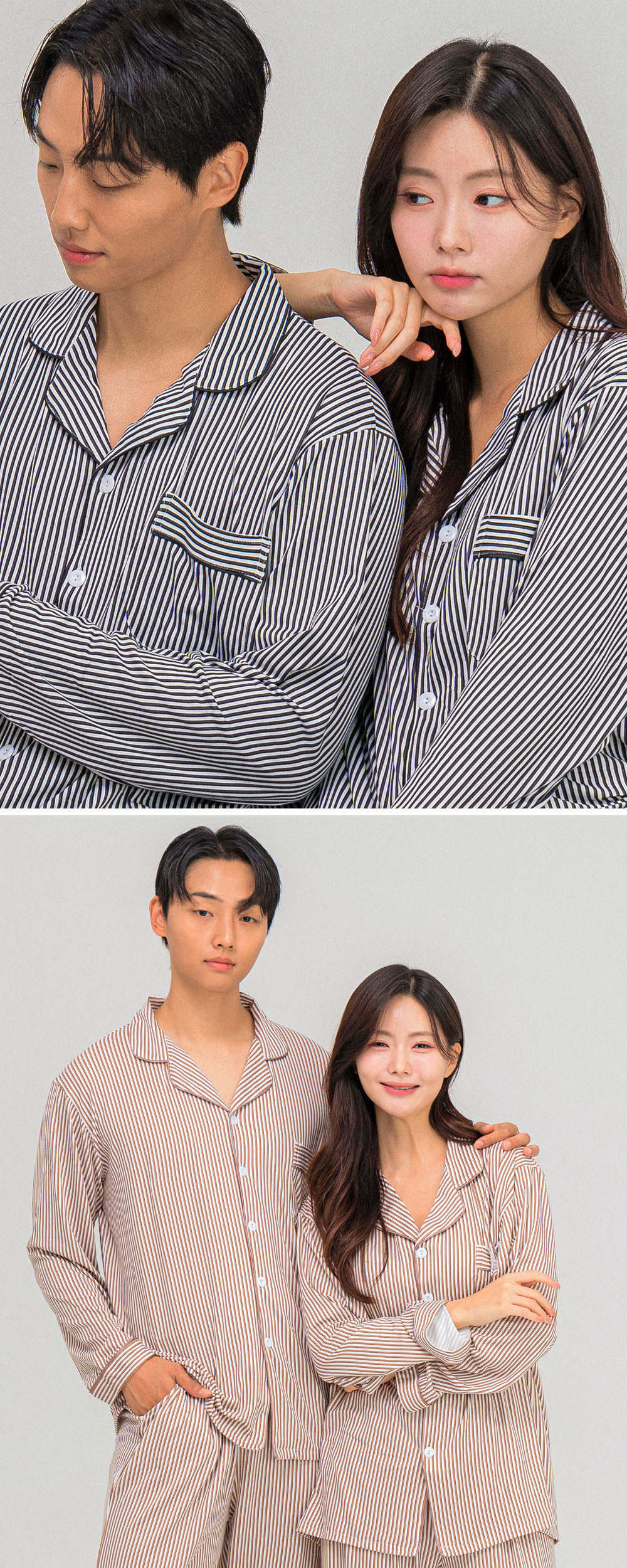 에이원 유니섹스 피치 기모 클래식 라인 카라 잠옷 세트 올리브