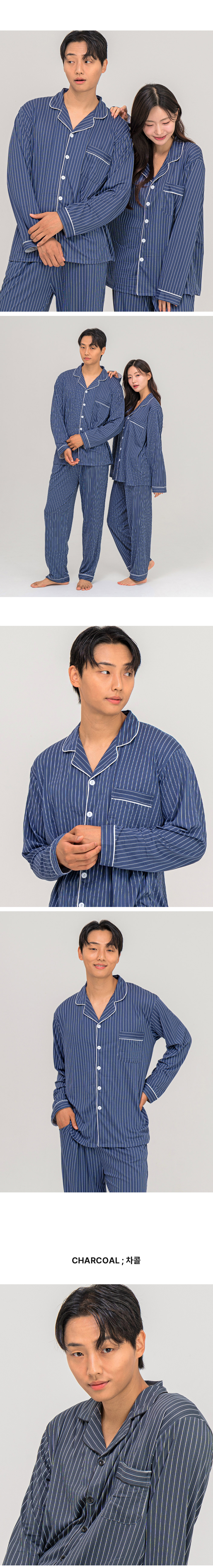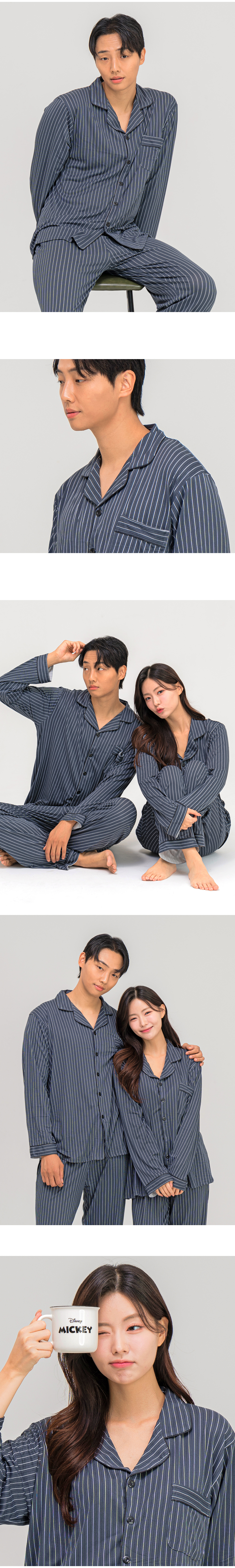 [3% 적립] 에이원 유니섹스 피치 기모 핀스트라이프 카라 잠옷 세트 네이비