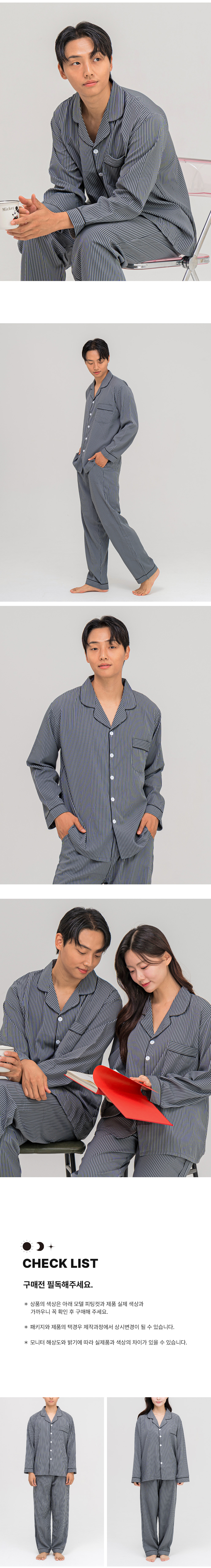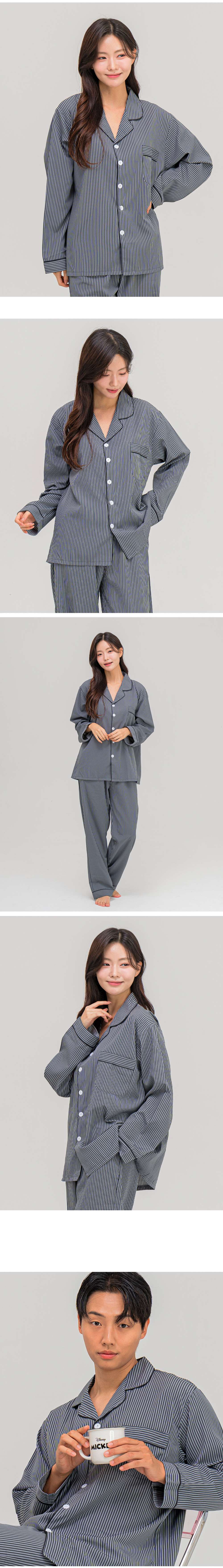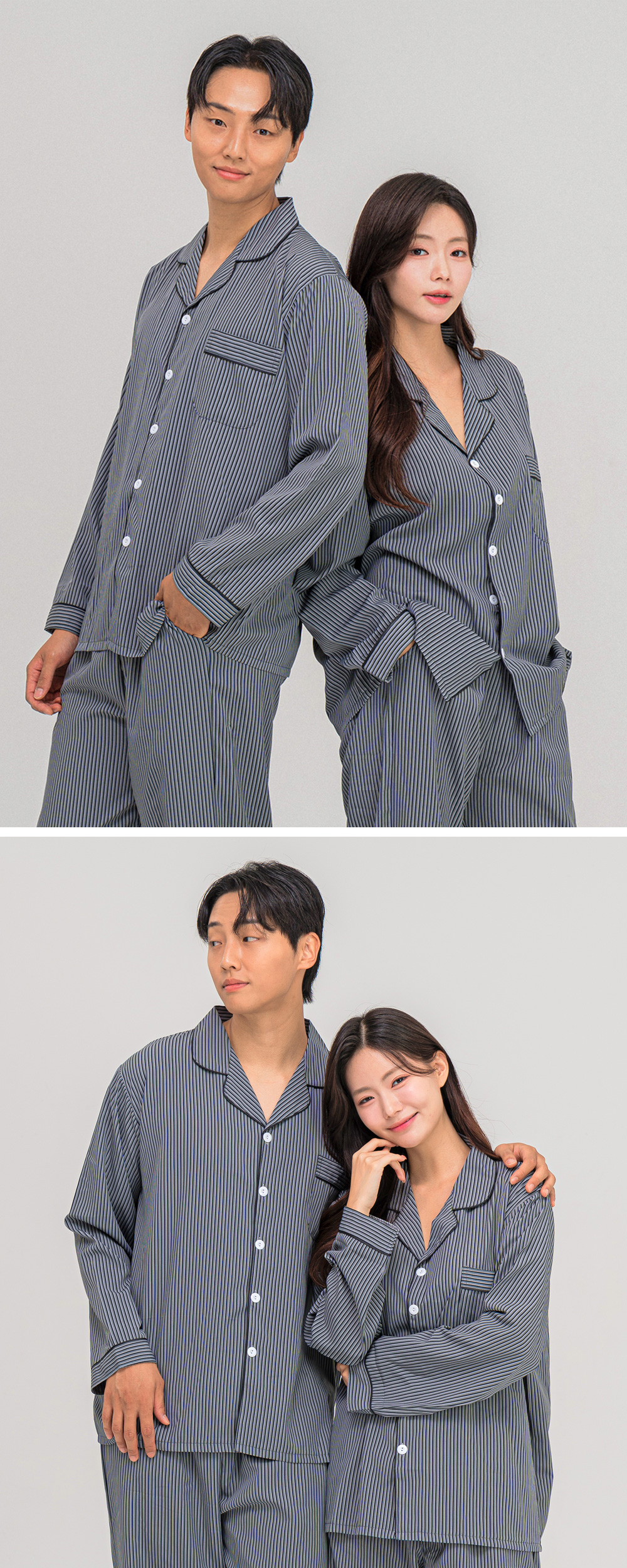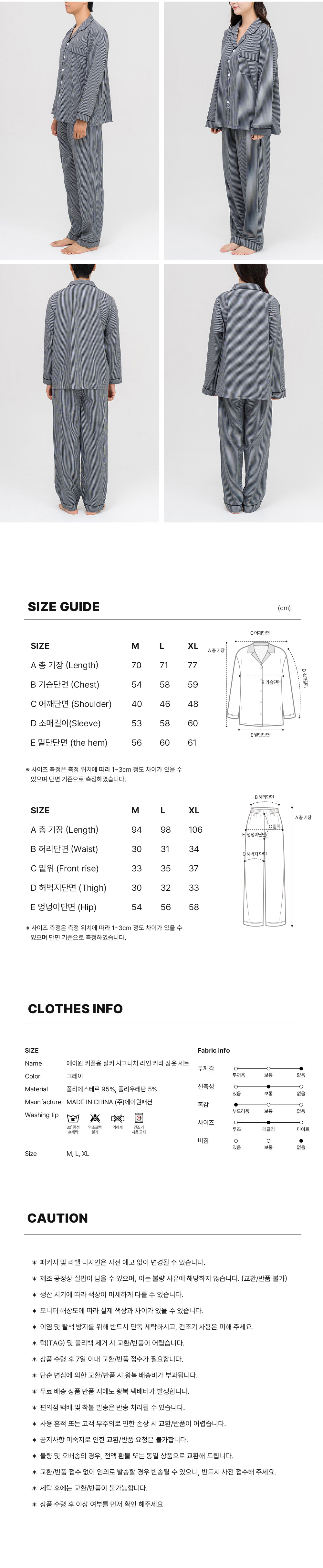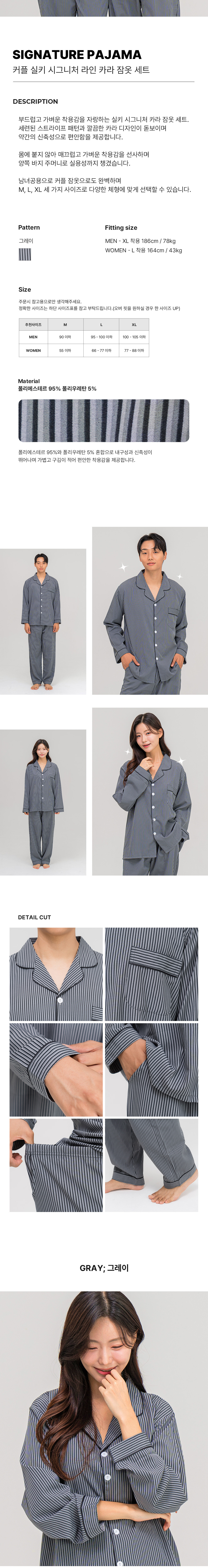 [3% 적립] Aone Unisex Silky Signature Line Collar Pajama Set Gray
