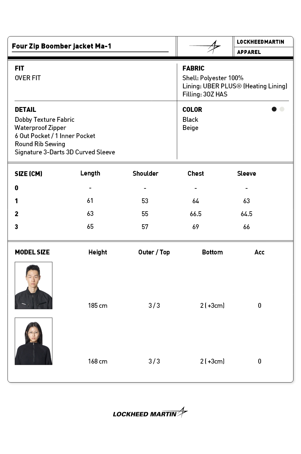 LOCKHEED MARTIN Four Zip Bomber Jacket MA-1 Beige