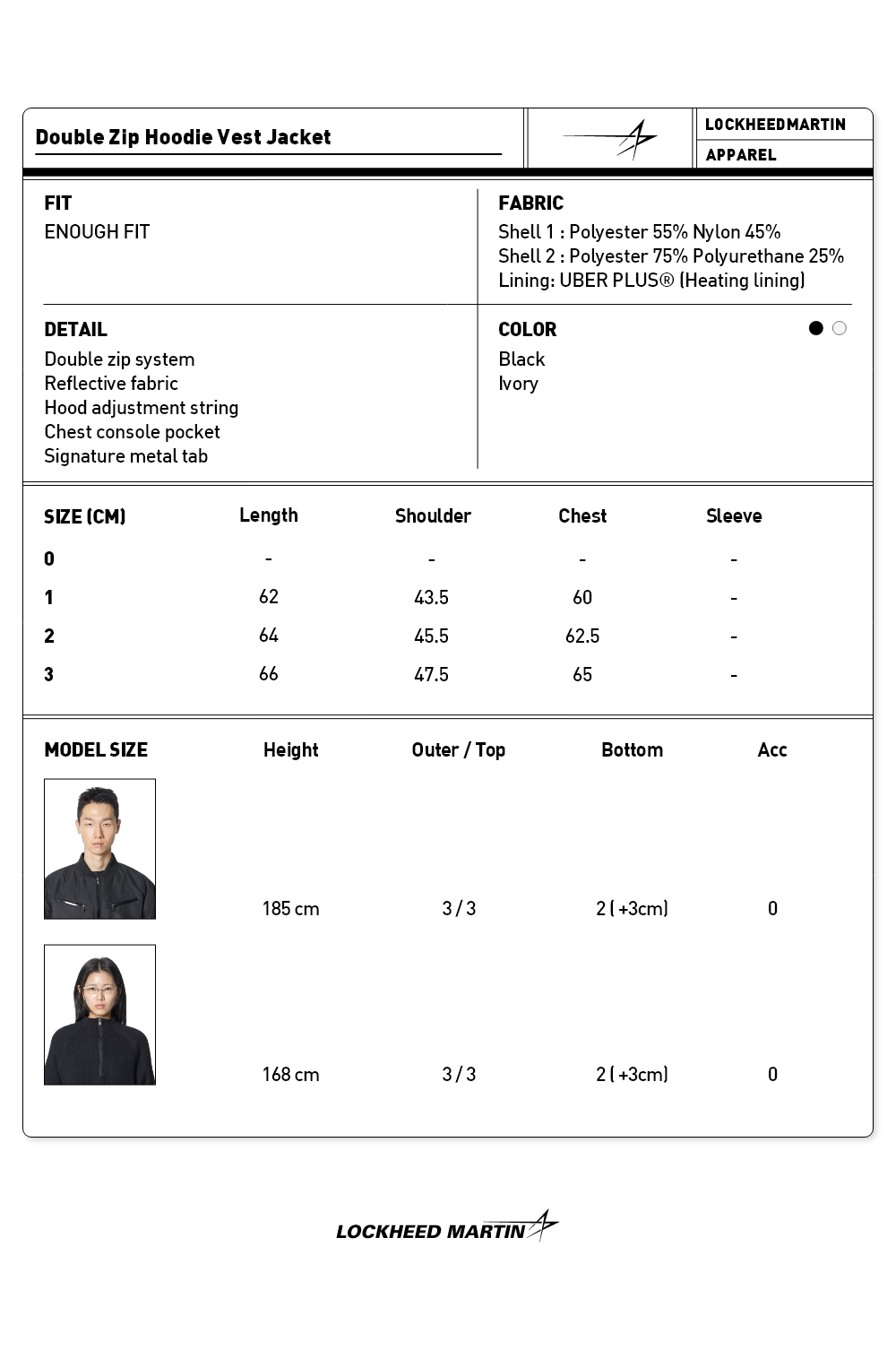 LOCKHEED MARTIN Double Zip Hoodie Vest Jacket Ivory