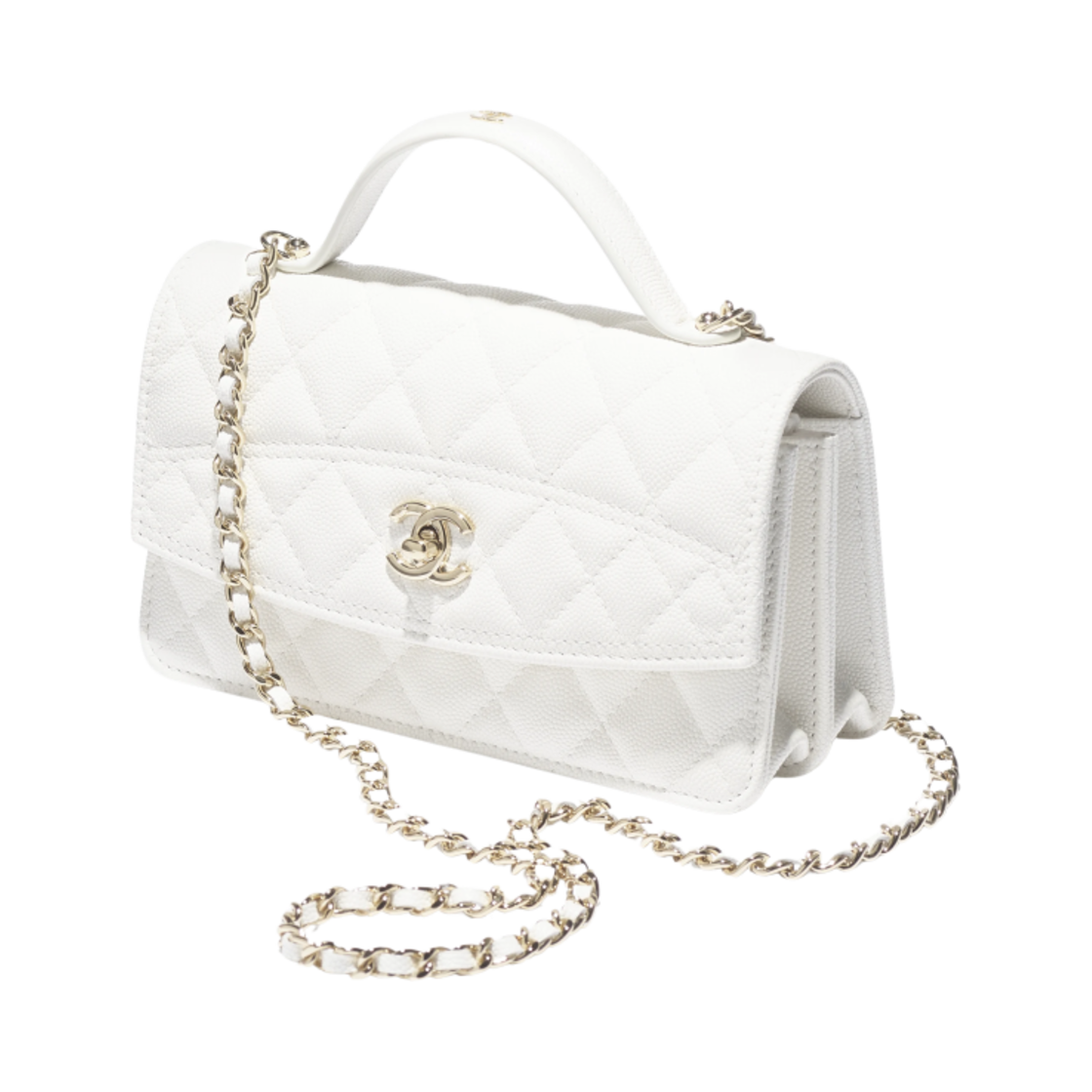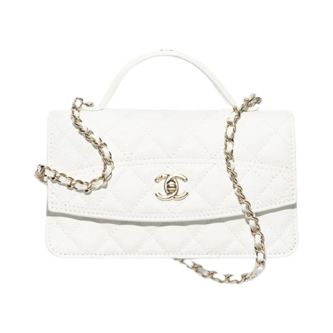 샤넬 체인 달린 미니백 그레인드 카프스킨 & 골드 메탈 화이트