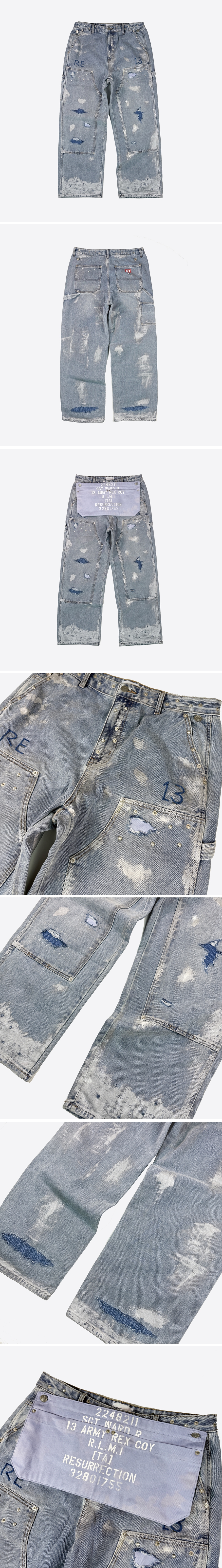 레저렉션13 페인티드 디테일 더블니 팬츠 데님
