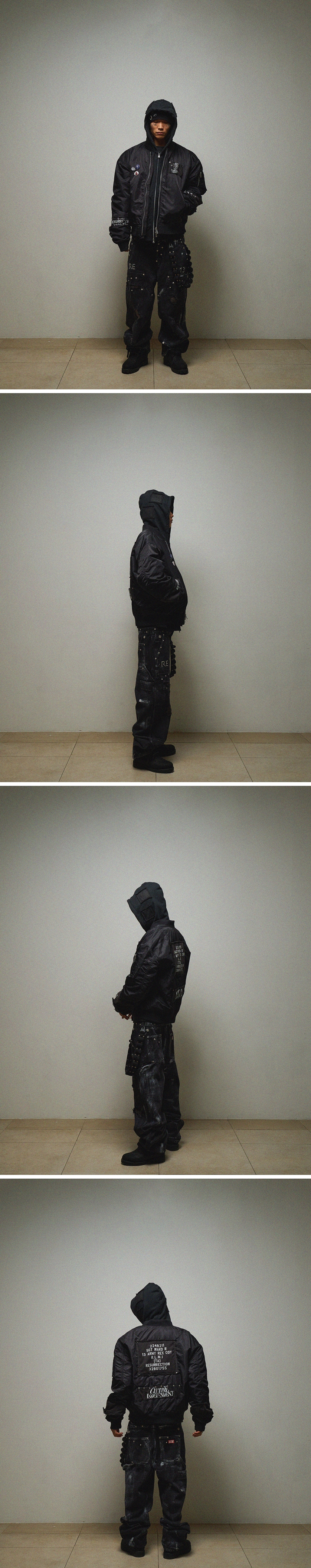 레저렉션13 페인티드 디테일 더블니 팬츠 블랙