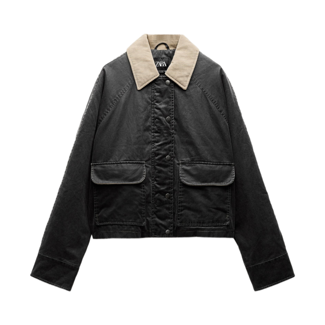 (W) Zara Waxed Jacket with Corduroy Collar Light Grey