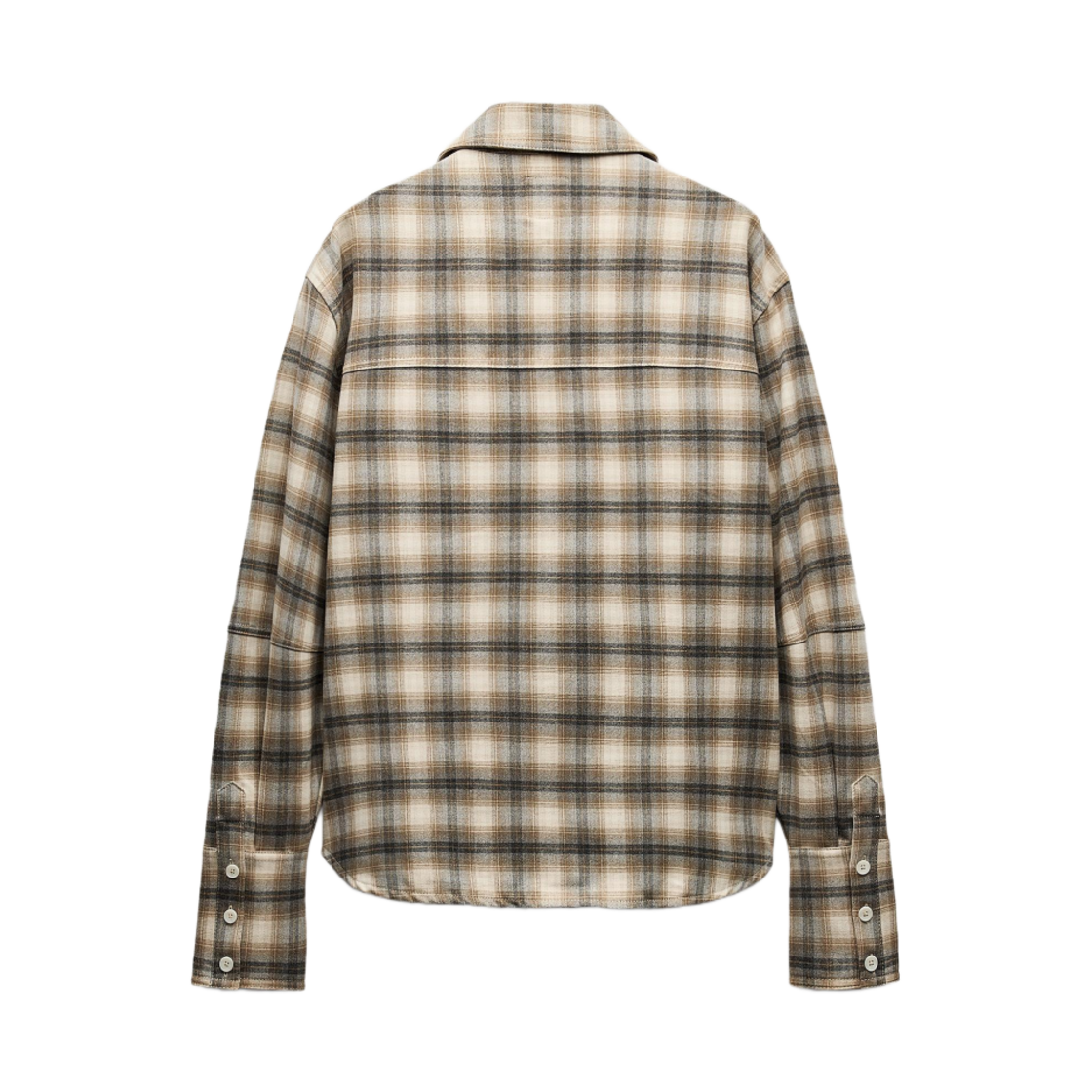(W) Zara Check Flannel Overshirt Ecru Brown