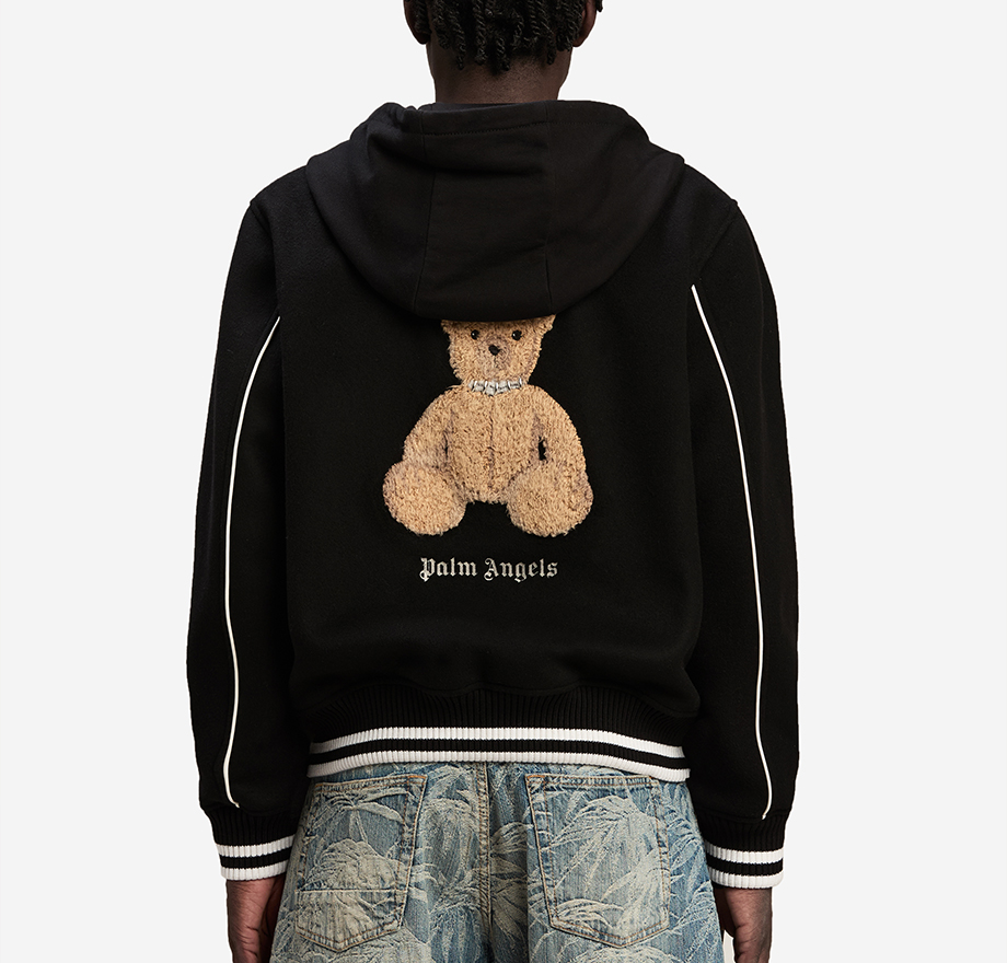 PALM ANGELS Bear In Mind Varsity Jacket Dark Grey