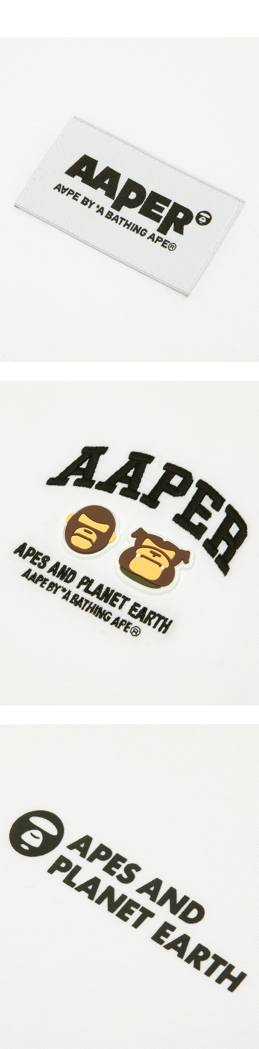 작은 로고와 레터링 포인트가 매력적인 에이프의 베이직 에이퍼 티 화이트입니다. - 앞/뒷면의 로고 디테일 - 박시한 실루엣 - 편안한 착용감