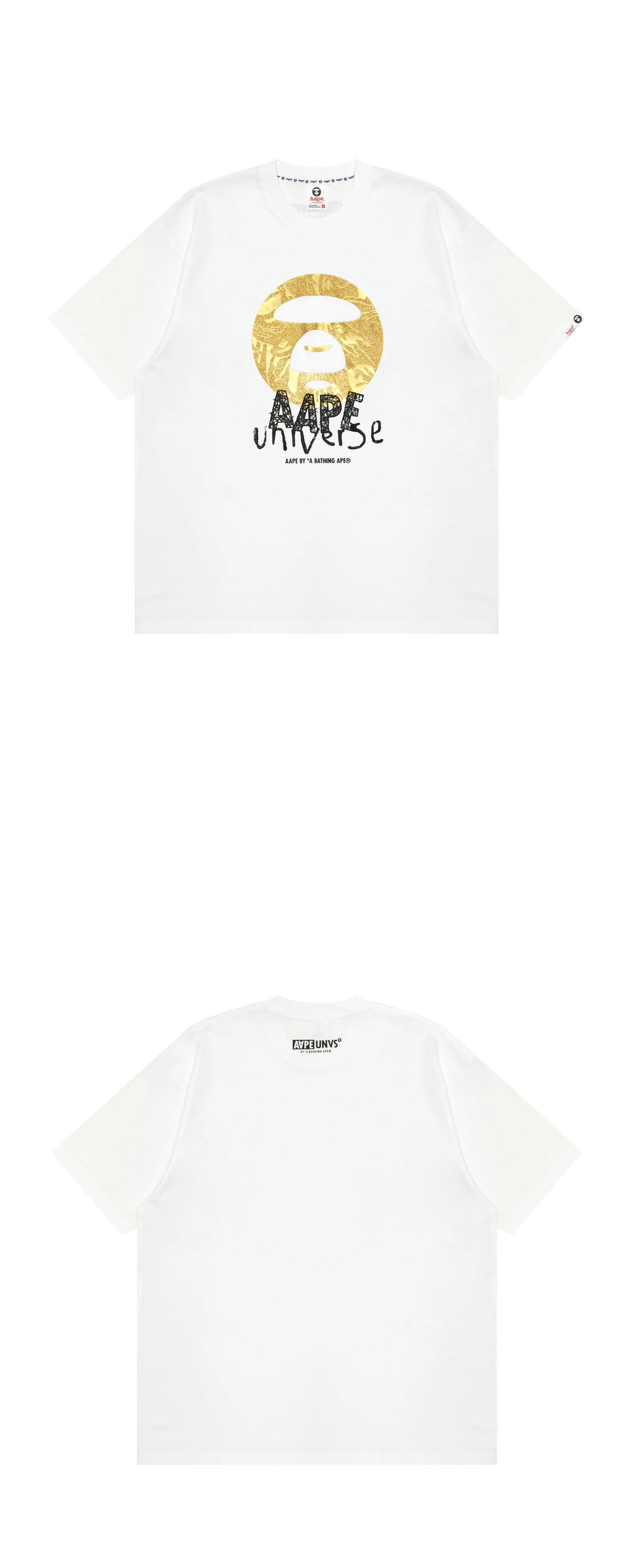 마치 달을 연상시키는 듯한 아름다운 문페이스 로고가 매력적인 에이프의 베이직 유니버스 티 화이트입니다. - 글리터 프린팅 - AAPE UNIVERSE 로고 - 편안한 착용감 - 박시한 실루엣