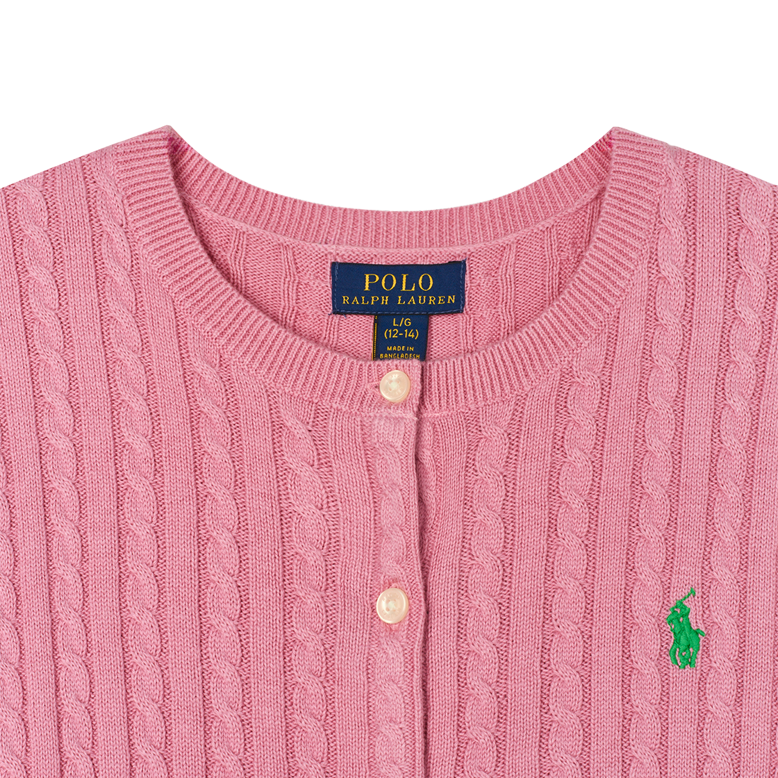 폴로 랄프 로렌 칠드런 미니 케이블 코튼 가디건 라구나 핑크 틸러 그린 - 25FW
