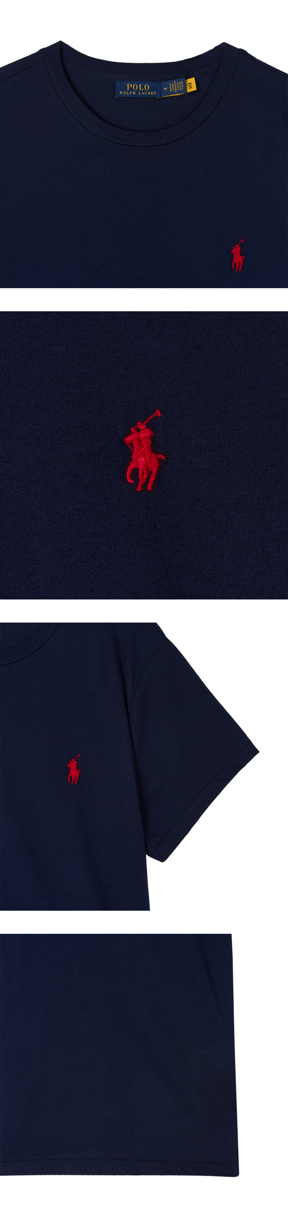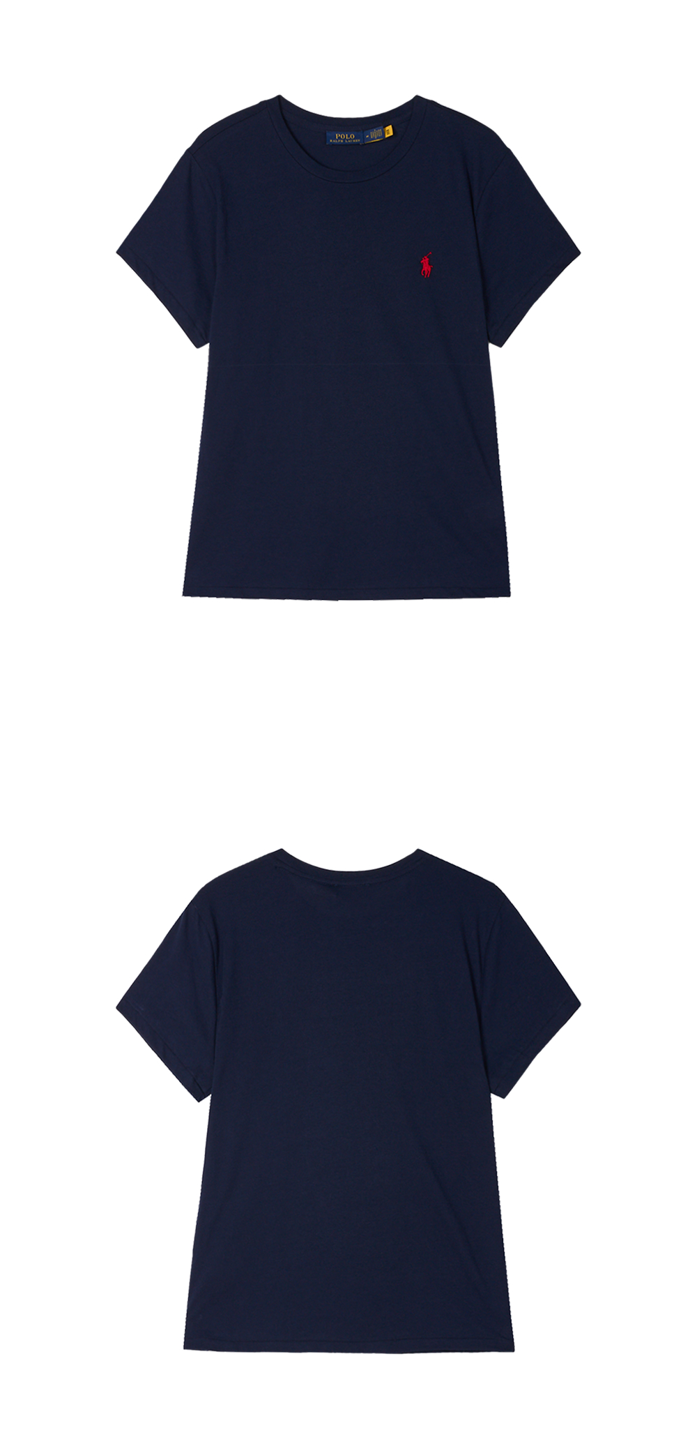 < KREAM은 랄프로렌 코리아 공식 파트너사로 모든 상품은 랄프로렌 코리아(유)에서 공급받은 정식 수입 제품입니다 > 슬림한 핏의 폴로 랄프 로렌 우먼 코튼 저지 크루넥 티 네이비입니다. - 스트레이트 핏 - 시그니처 포니 자수 - 숏 슬리브