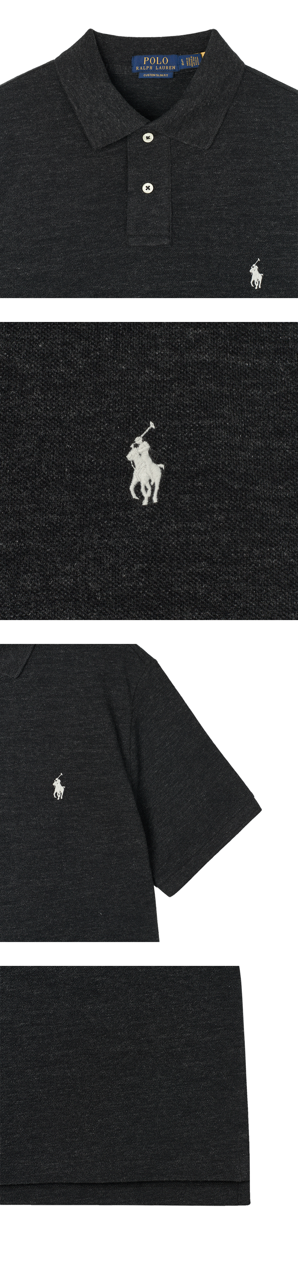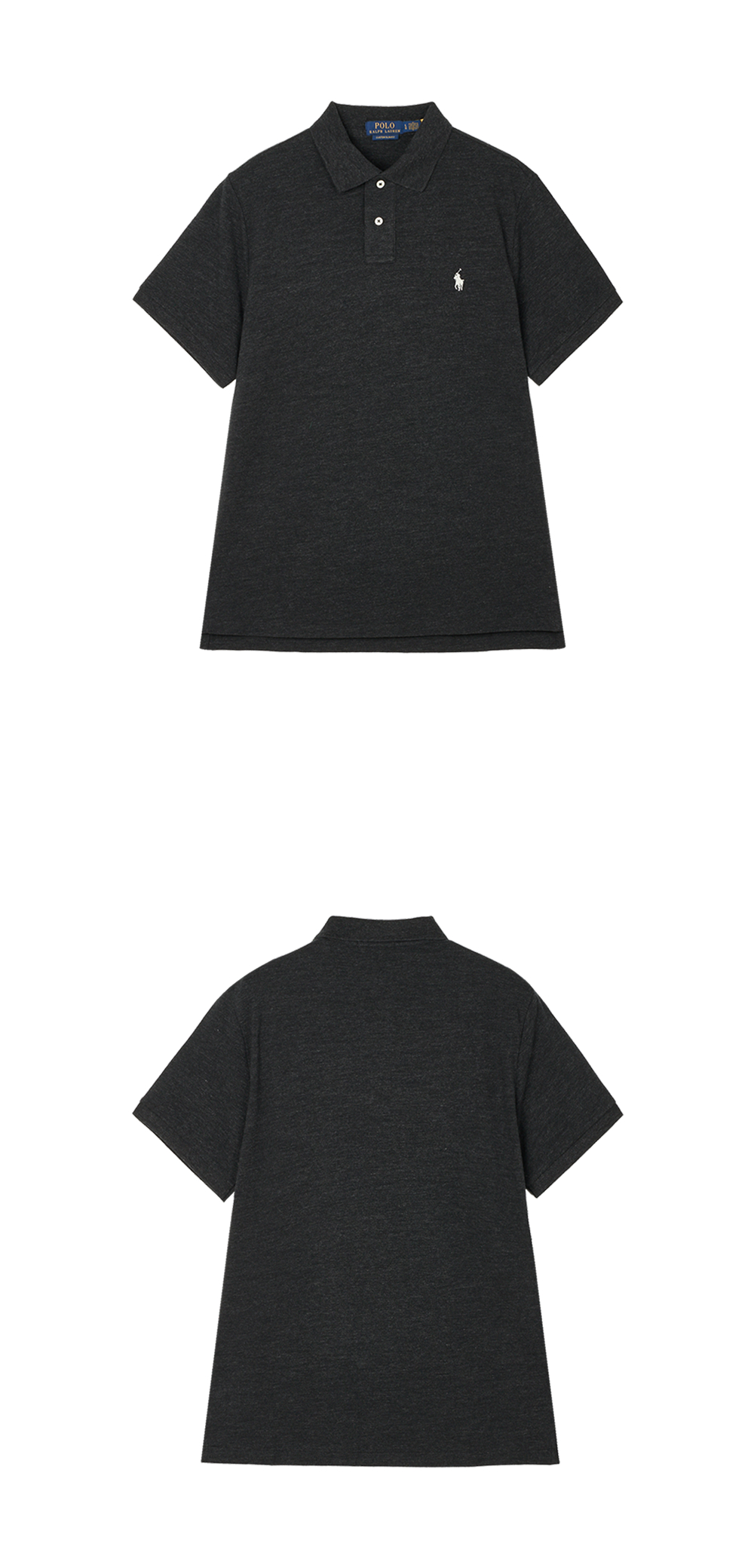 < KREAM은 랄프로렌 코리아 공식 파트너사로 모든 상품은 랄프로렌 코리아(유)에서 공급받은 정식 수입 제품입니다 > 통기성이 높은 코튼 메시로 만들어진 폴로 랄프 로렌의 커스텀 슬림 핏 메쉬 폴로 셔츠 블랙 말 헤더 - 25FW입니다. - 질감을 살린 룩과 부드러운 느낌 - 커스텀 슬림핏 - 리브 조직 폴로 칼라 & 암밴드 - 2 버튼 플래킷 - 테니스 테일 - 왼쪽 가슴에 시그니처 포니 자수