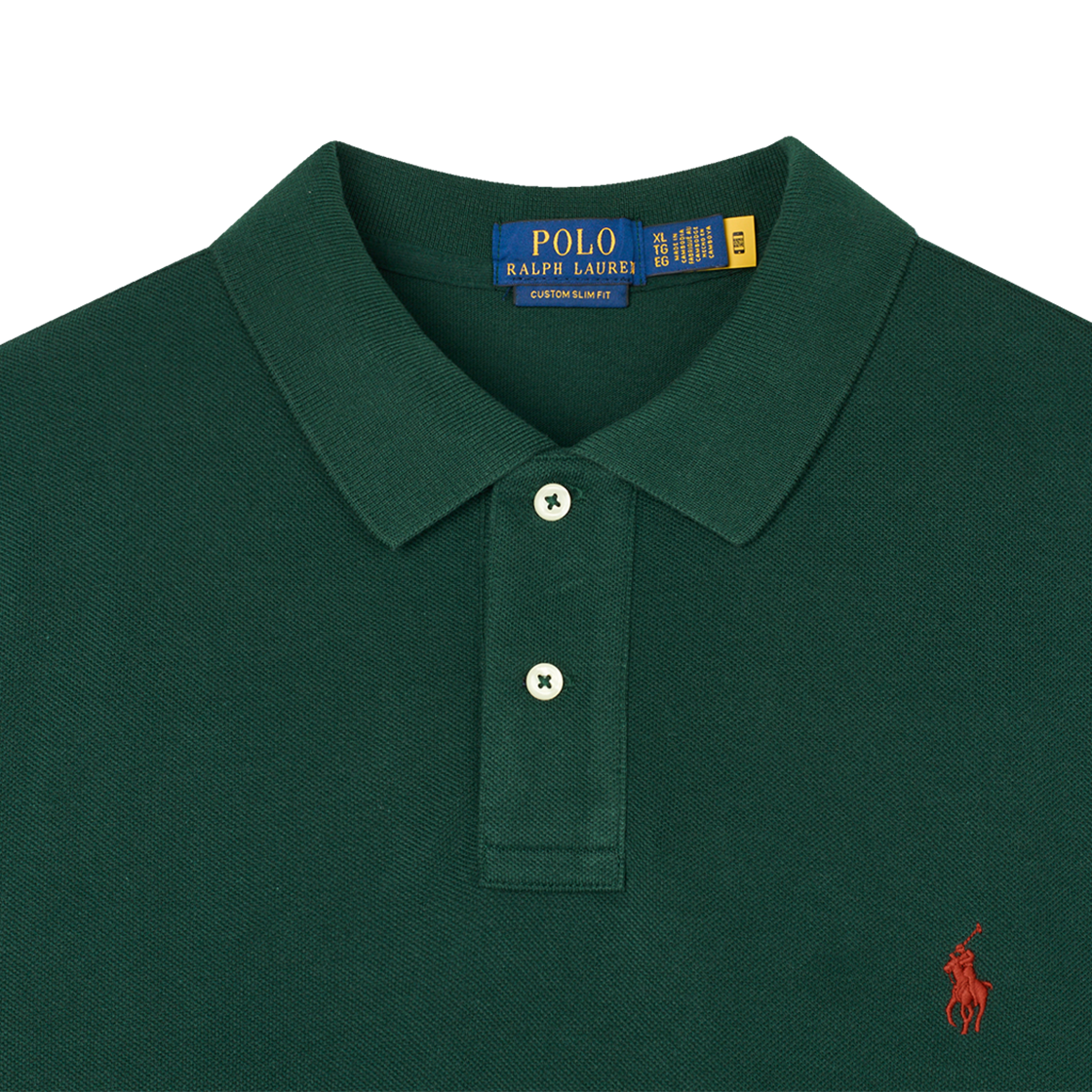 < KREAM은 랄프로렌 코리아 공식 파트너사로 모든 상품은 랄프로렌 코리아(유)에서 공급받은 정식 수입 제품입니다 > 통기성이 높은 코튼 메시로 만들어진 폴로 랄프 로렌의 커스텀 슬림 핏 메쉬 폴로 셔츠 컬리지 그린 - 25FW입니다. - 클래식핏과 슬림핏 사이의 슬림한 실루엣으로 팔에 밀착되는 슬리브, 웨이스트 전체 테일러링이 특징인 커스텀 슬림핏 디자인 - 질감을 살린 룩과 부드러운 느낌 - 리브 조직 폴로 칼라 & 암밴드 - 2 버튼 플래킷 - 테니스 테일 - 왼쪽 가슴에 시그니처 포니 자수
