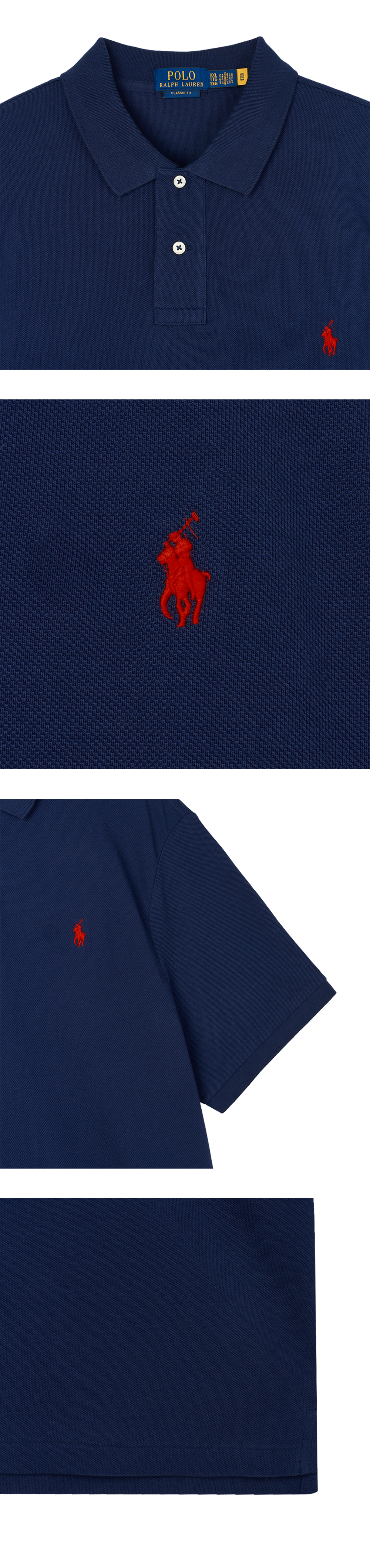 폴로 랄프 로렌 클래식 핏 메쉬 폴로 셔츠 뉴포트 네이비 - 25FW