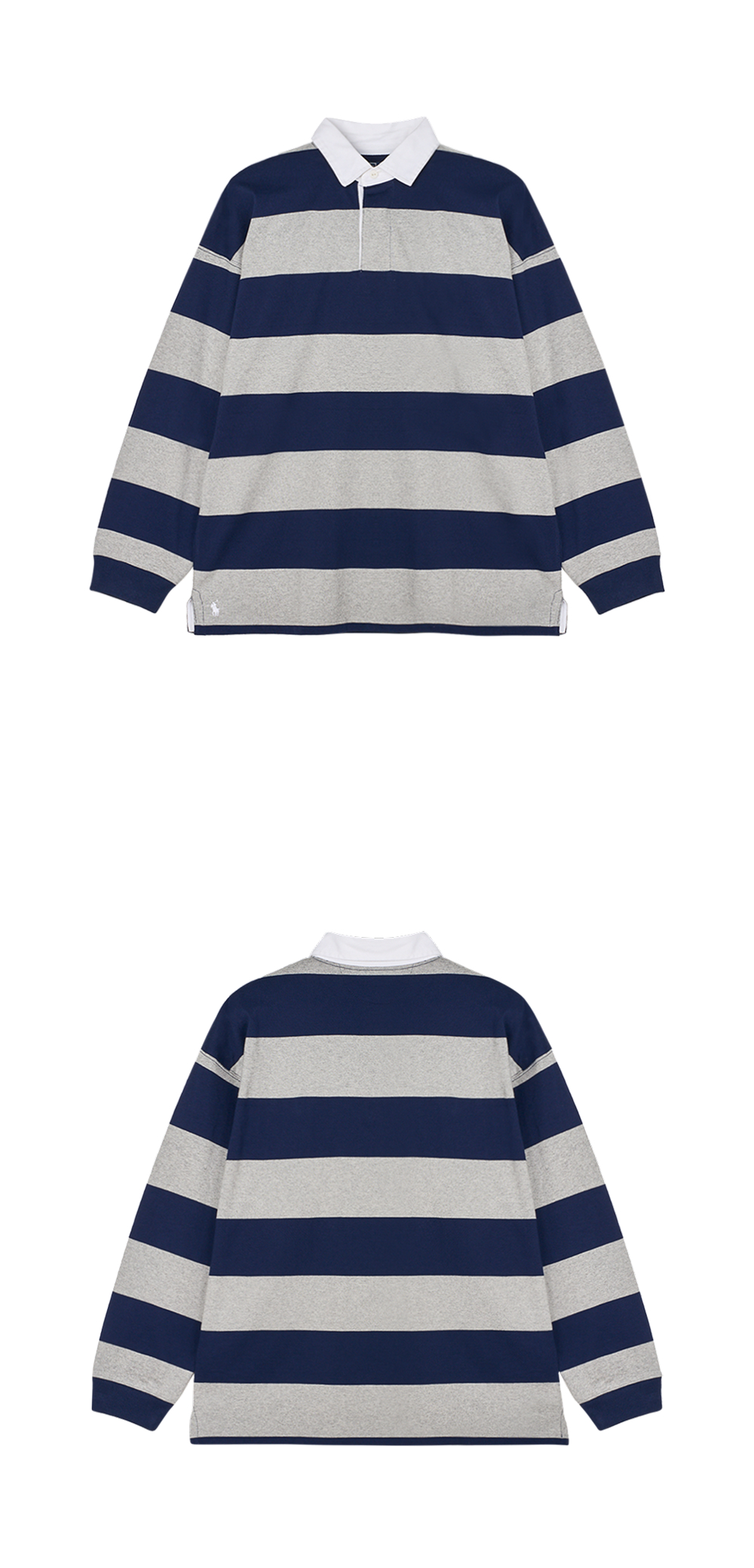 폴로 랄프 로렌 빅 핏 스트라이프 저지 럭비 셔츠 뉴포트 네이비 앤도버 헤더 - 25FW