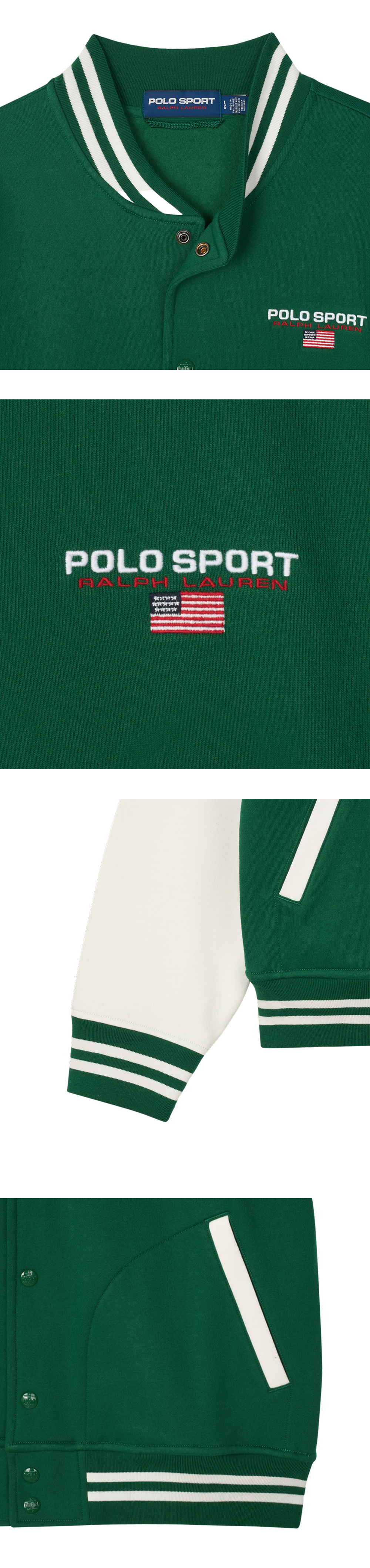 폴로 랄프 로렌 폴로 스포츠 플리스 베이스볼 자켓 테니스 그린 데크워시 화이트 - 25SS