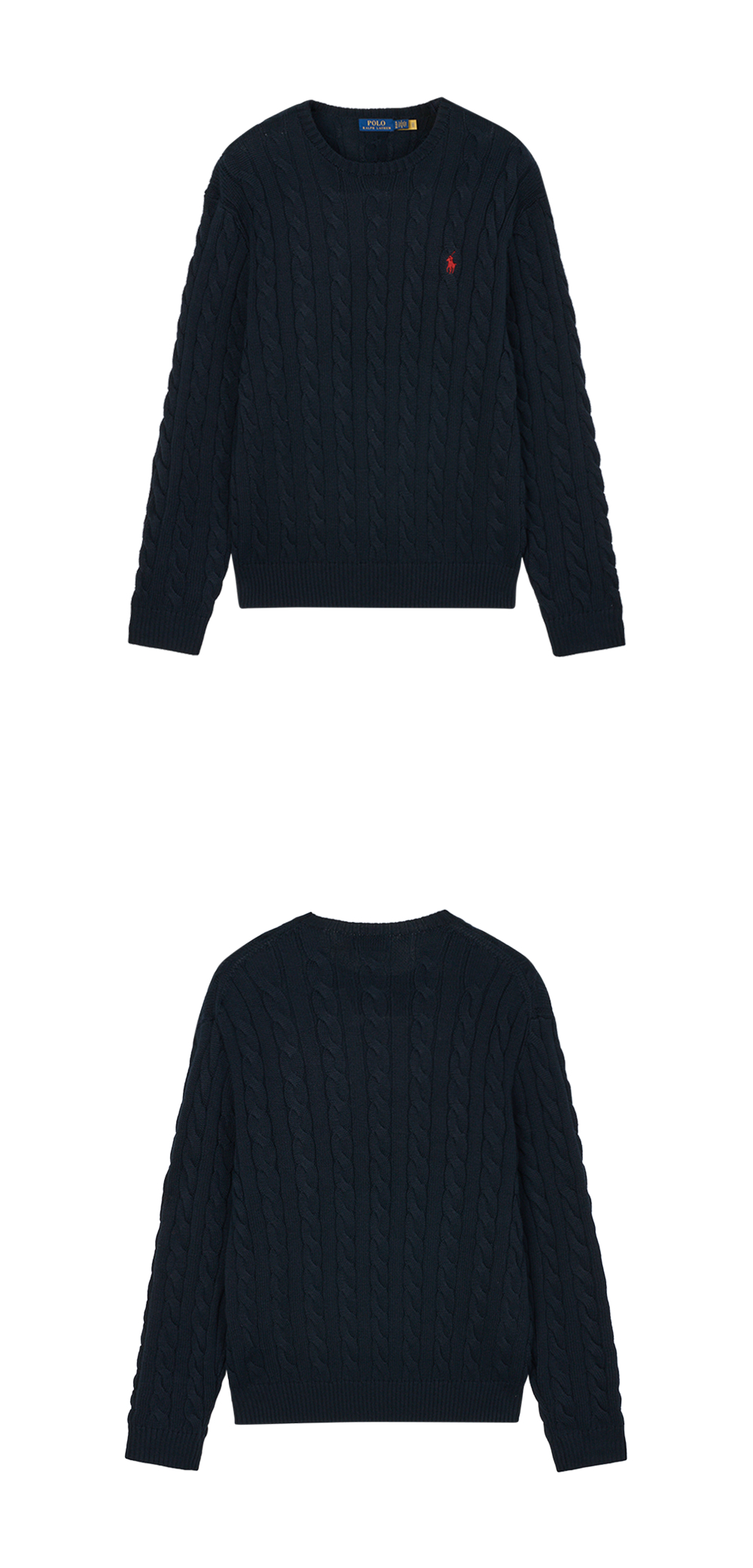 < KREAM은 랄프로렌 코리아 공식 파트너사로 모든 상품은 랄프로렌 코리아(유)에서 공급받은 정식 수입 제품입니다 > 조직감이 매력적인 폴로 랄프 로렌 케이블 니트 코튼 스웨터 헌터 네이비입니다. - 레귤러핏 - 왼쪽 가슴에 시그니처 포니 자수 - 가슴이 더 넓으면서도 모던한 실루엣