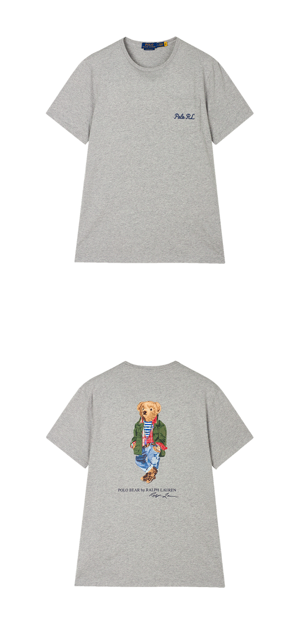 < KREAM은 랄프로렌 코리아 공식 파트너사로 모든 상품은 랄프로렌 코리아(유)에서 공급받은 정식 수입 제품입니다 > 폴로 랄프 로렌 커스텀 슬림핏 폴로 베어 저지 티셔츠 그레이입니다. - 슬림 핏 - 가슴 포켓에 로고 자수