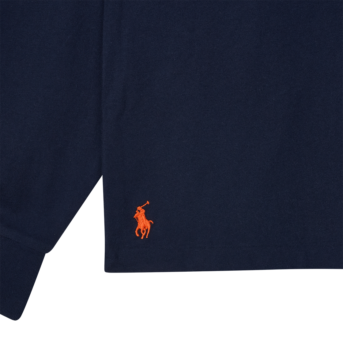 < KREAM은 랄프로렌 코리아 공식 파트너사로 모든 상품은 랄프로렌 코리아(유)에서 공급받은 정식 수입 제품입니다 > 아이코닉한 자수 포니와 로고 디테일이 더해져 브랜드의 시그니처 스타일을 완성하는 폴로 랄프 로렌의 커스텀 슬림핏 로고 저지 티셔츠 크루즈 네이비 - 25SS입니다. - crewneck & ribbed knit cuffs - 왼쪽 가슴에 인쇄되어 있는 브랜드 로고 - 오른쪽 밑단의 시그니처 자수 포니
