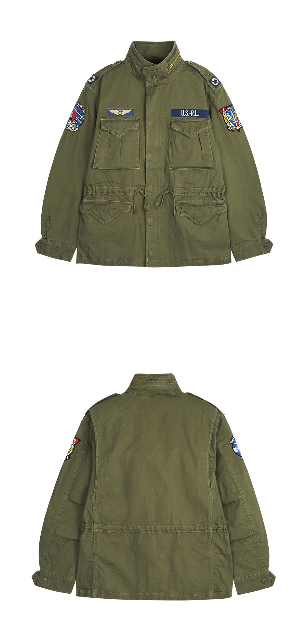 < KREAM은 랄프로렌 코리아 공식 파트너사로 모든 상품은 랄프로렌 코리아(유)에서 공급받은 정식 수입 제품입니다 > 모던한 핏과 정통 디테일, 시그니처 패치를 조합하여 Ralph Lauren의 감성으로 재해석한 폴로 랄프 로렌의 아이코닉 헤링본 필드 자켓입니다. - 앞면에 후크 앤 루프 탭이 있는 모크넥, 빌트인 브림과 통기성 있는 그로밋을 적용한 접이식 후드, 앞면의 전장 지퍼, 스냅 스톰 플래킷 - 버튼 배럴 커프스, 롱 슬리브, 버튼 숄더 견장, 양쪽 숄더에 별 패치, 양쪽 슬리브에 서플러스 스타일 패치 - 왼쪽 체스트에 'U.S.-R.L.' 패치, 오른쪽 체스트에 윙 스타 패치 - 체스트에 스냅 포켓 2개, 웨이스트 앞면에 스냅 포켓 2개, 왼쪽 체스트 내부에 포켓, 드로스트링 웨이스트, 바디 앞면, 바디 뒷면 상단 및 슬리브에 안감 처리