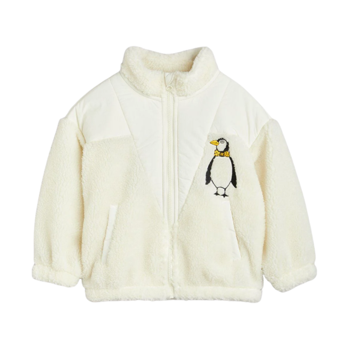 (Kids) Mini Rodini Penguin Pile Zip Jacket White