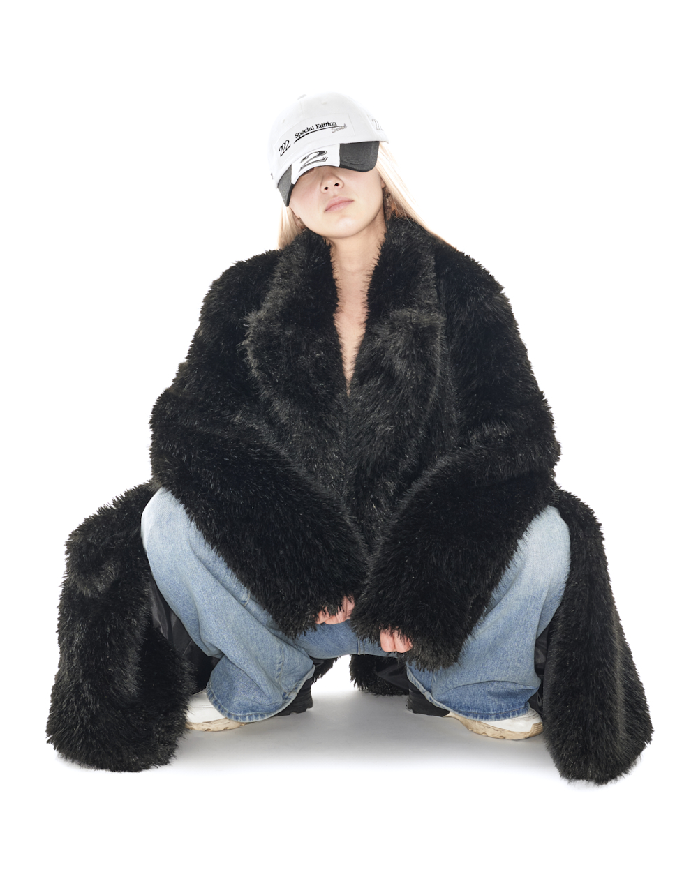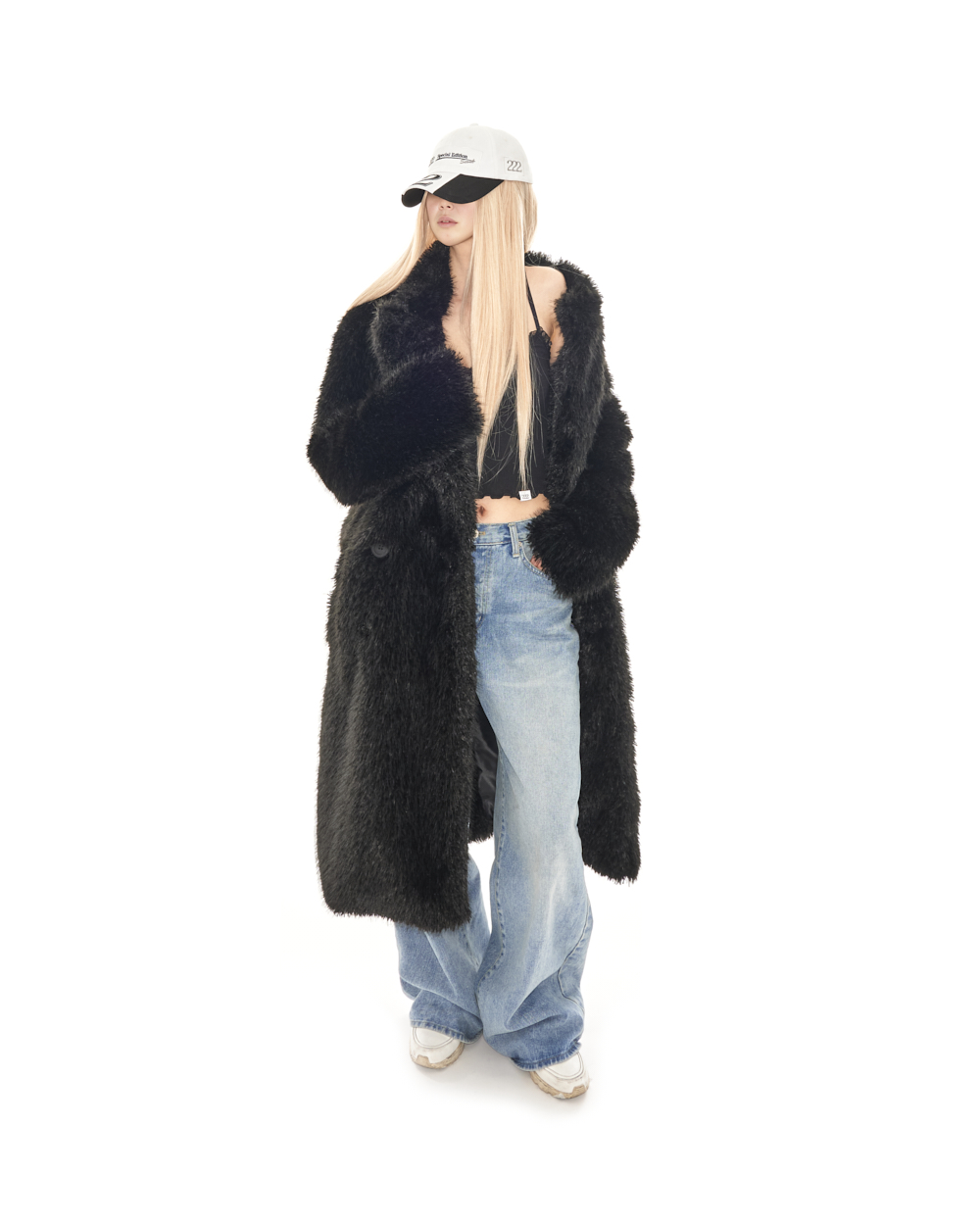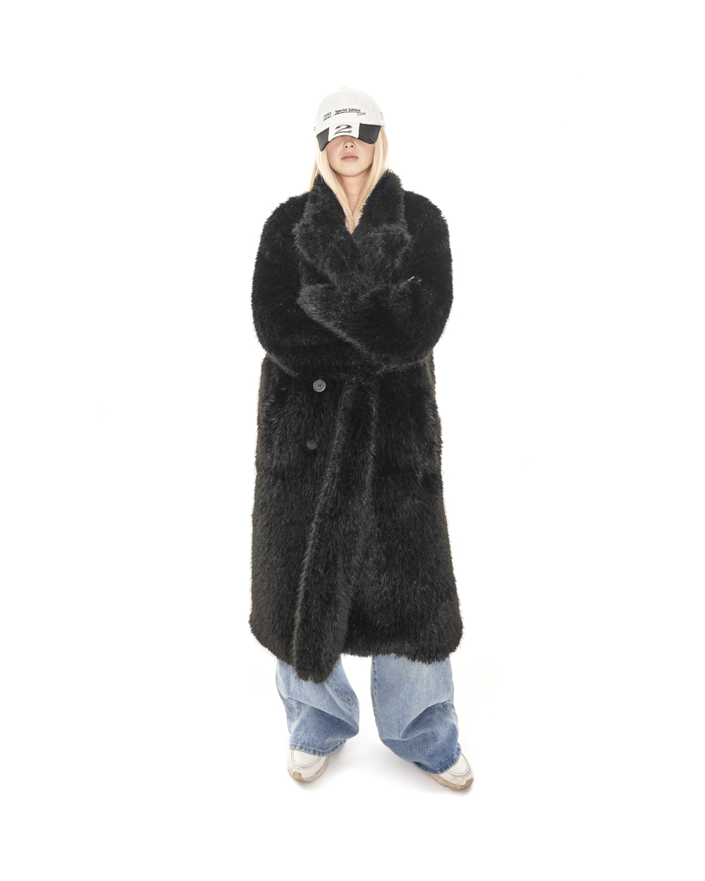 -세련된 실루엣의 더블 롱 퍼코트 -밀도감이 높아 풍성하게 착용되는 퍼텍스쳐 -더블 브레스티드 형태 -얼스터카라 디자인 -루즈한 실루엣으로 스타일리시한 착용감 -인포켓내장 -백라인 뒷트임으로 활동성을 높임 -여유로운 실루엣으로 이너 레이어링시 편안하며, 고급스러운 퍼 텍스쳐 포인트로 드레스업 하기 좋은 아이템 -’222’ 레더로고 패치포인트