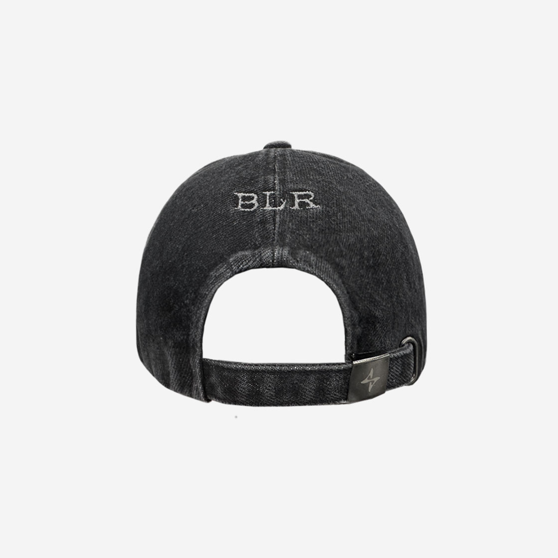 여유 있는 깊이감의 데님 캡 워싱으로 구현한 눈밭 색감 전면부 BLR 눈꽃 그래픽 로고 자수 후면부 BLR 텍스트 로고 자수