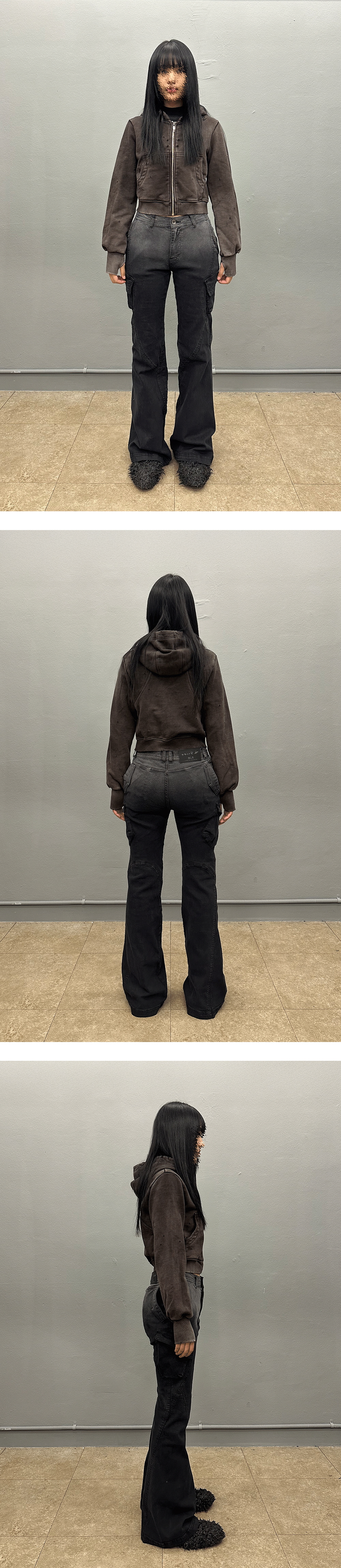 [KREAM 단독] 비엘알 그런지 펀치드 워싱 후디 집업 애쉬 그레이