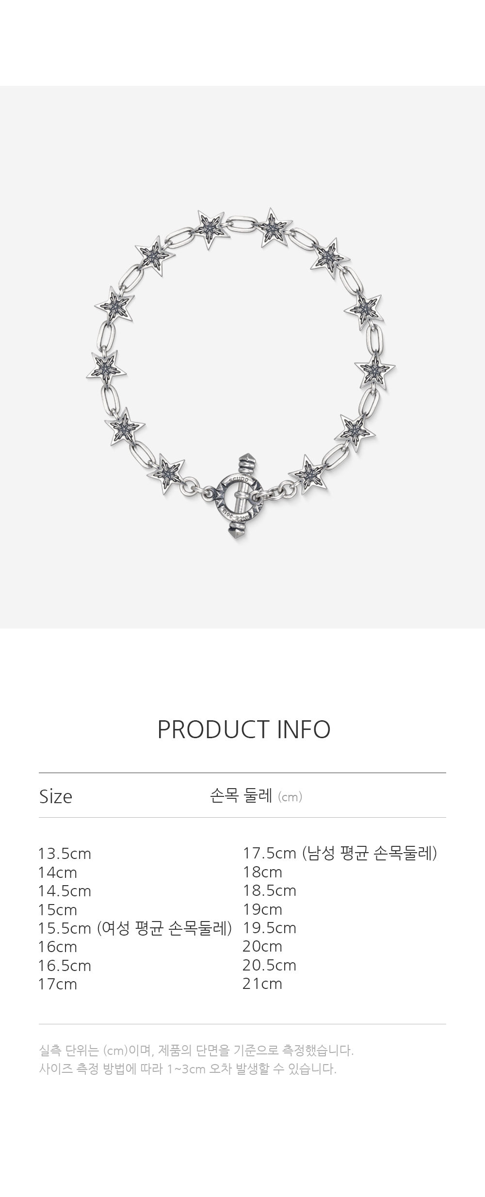 [Star line] 2Drop Star Line Texture : vintage glossy Measurement : 1pendant 9mm - Q바 마감 * 착용하실 손목둘레(cm)를 측정해 주시고 , 손목둘레를 기준으로 옵션을 선택해 주시면, 정핏으로 제작드립니다. * 옵션에 없는 손목둘레 또는 원하시는 핏이 있으시다면 , 문의 남겨주시면 , 상담 도와드리겠습니다. 스쿠도의 주얼리는 맞춤 handcraft 주얼리로, 7~10일 제작기간이 소요됩니다. (주말 / 공휴일 제외) 추가 제품 상담이 필요하시면, 문의 부탁드립니다.