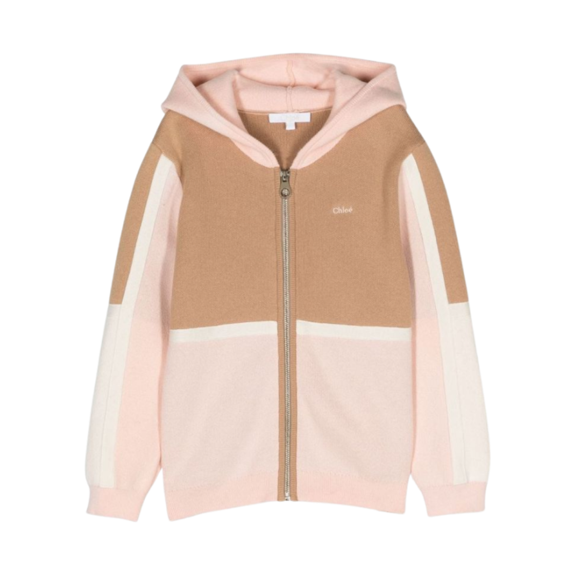 (Kids) Chloe Logo Embroidered Knit Zip Hoodie Light Brown Multicolour