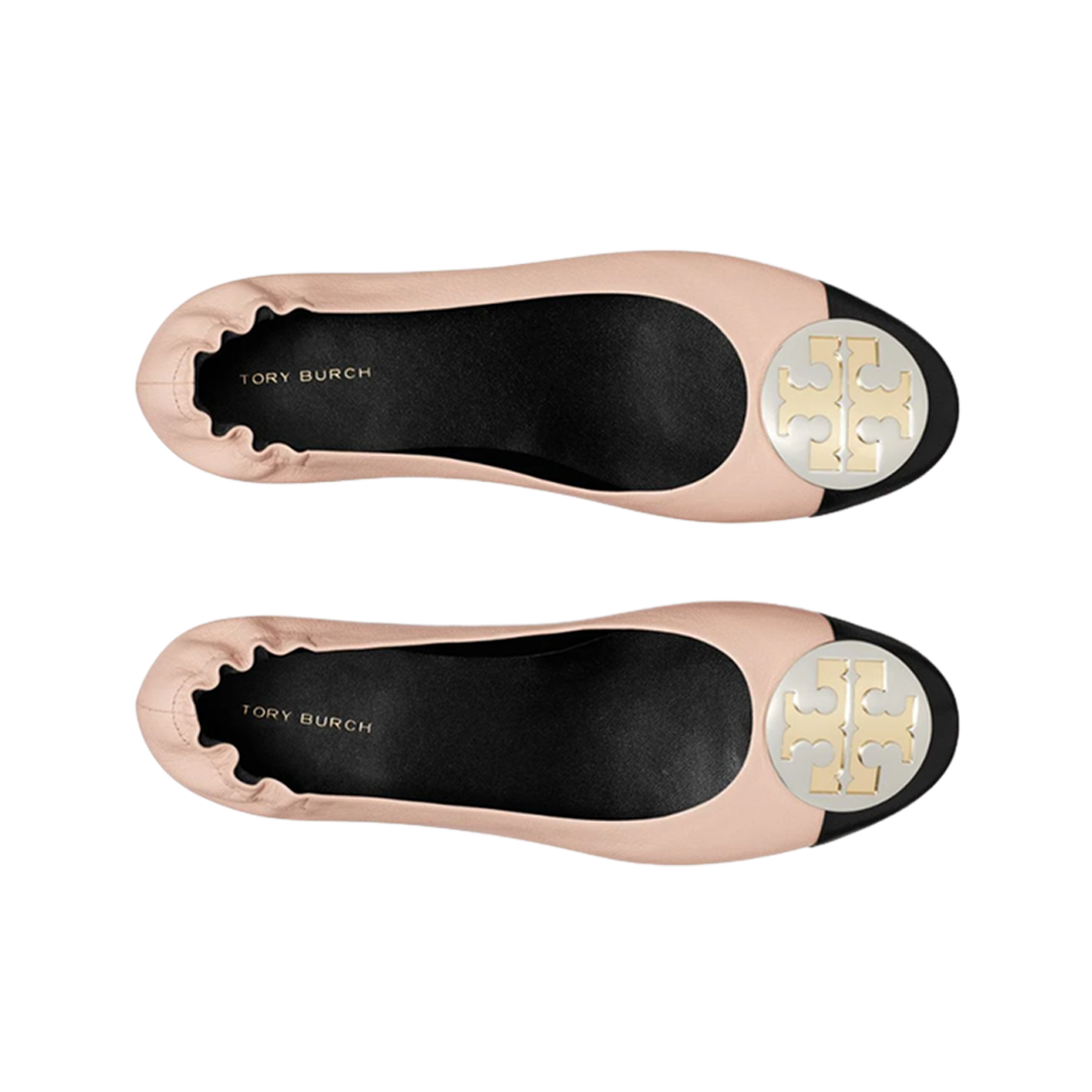 (W) Tory Burch Claire Cap Toe Ballet Rose Silk Perfect Black