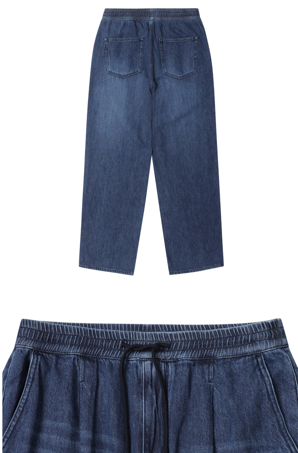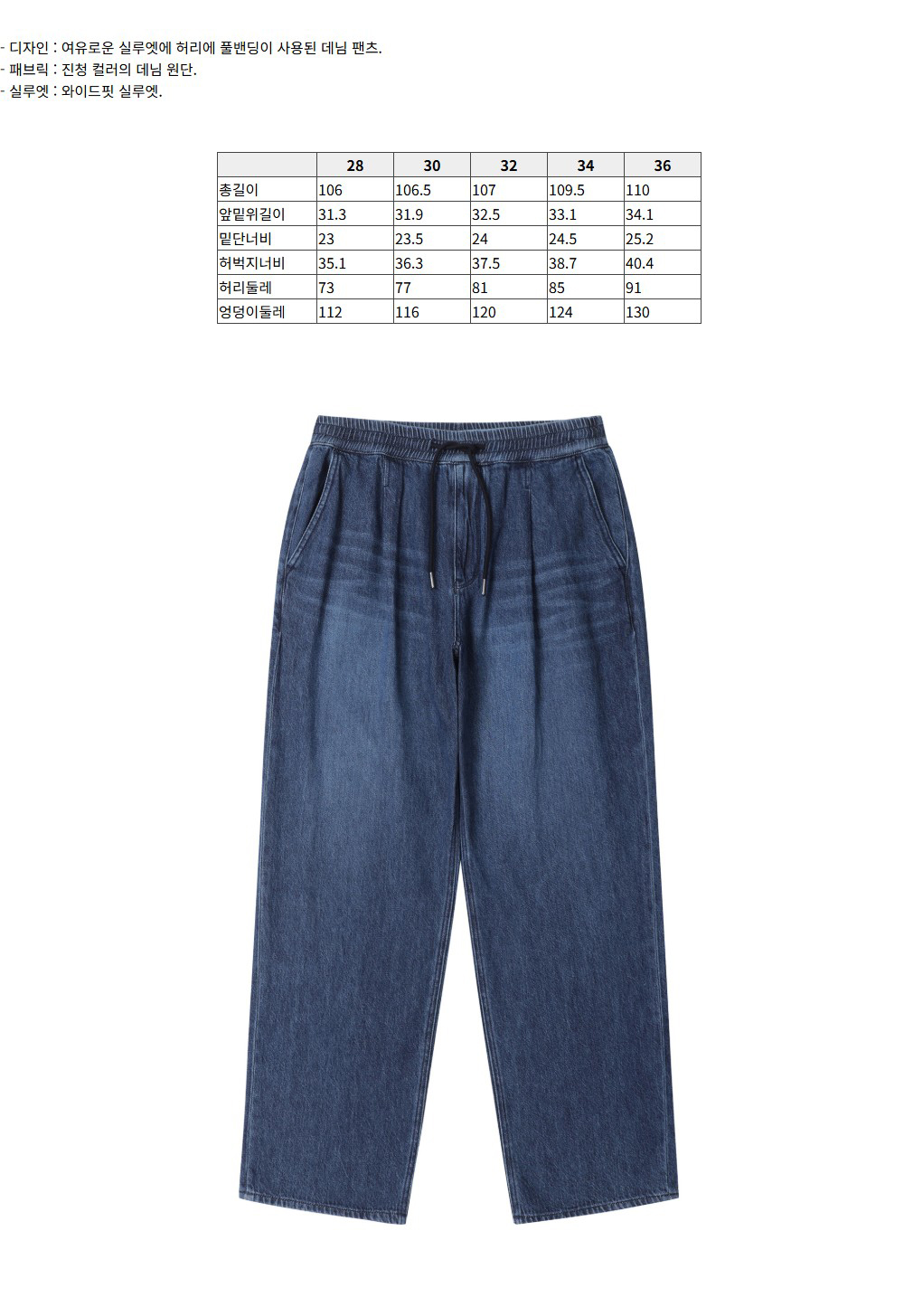 커스텀멜로우 아울렛 와이드 핏 밴딩 진 블루