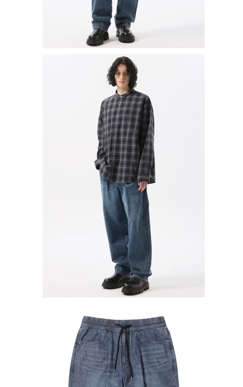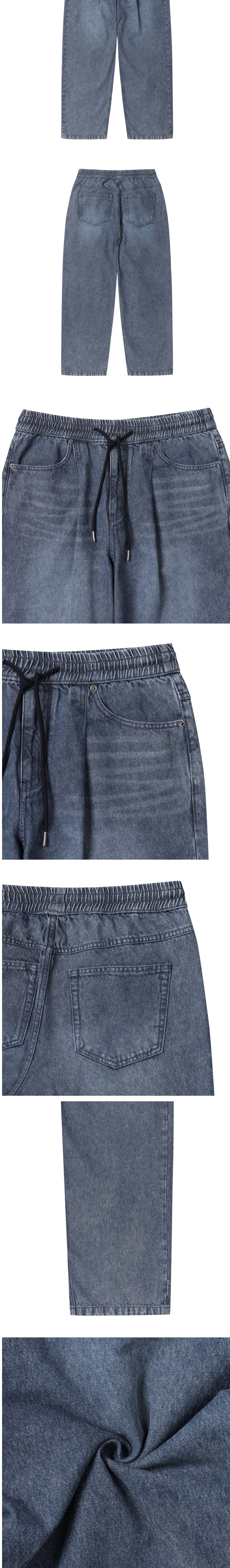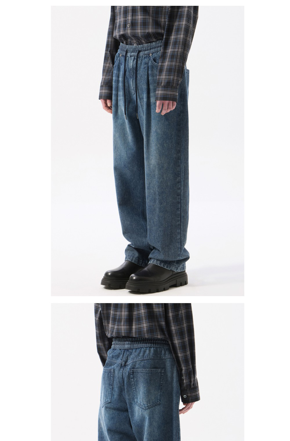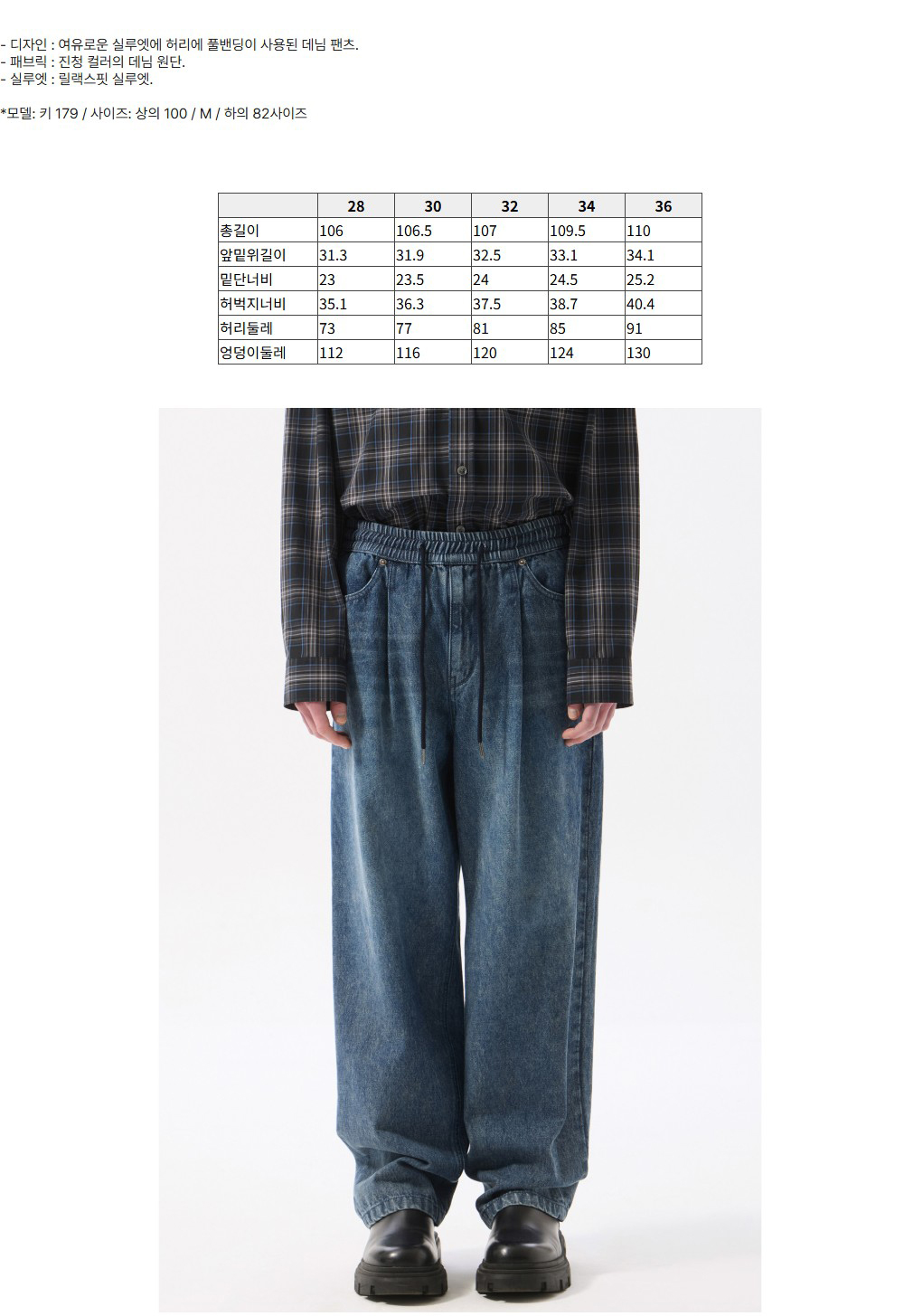커스텀멜로우 와이드 핏 밴딩 진 블루