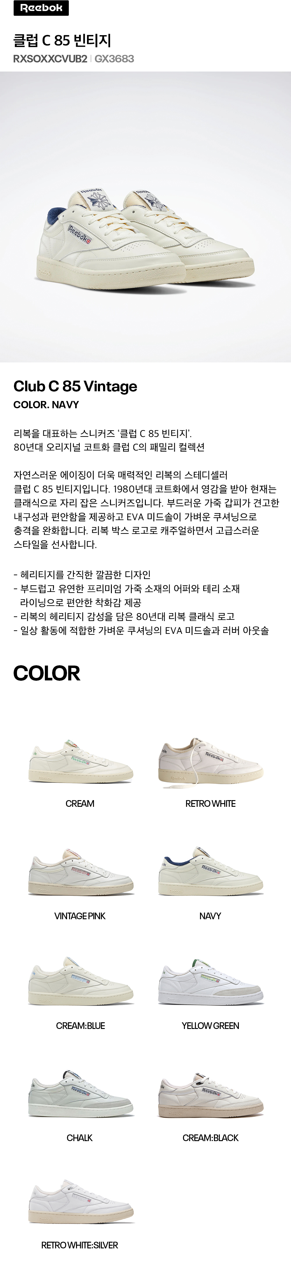 리복 클럽 C 85 빈티지 네이비