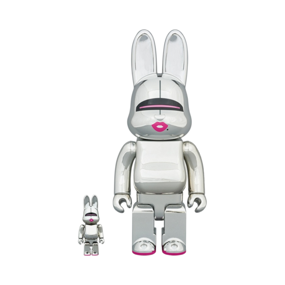 Bearbrick x Hajime Sorayama Sexy Robot Rabbrick 100% & 400% Set Chrome